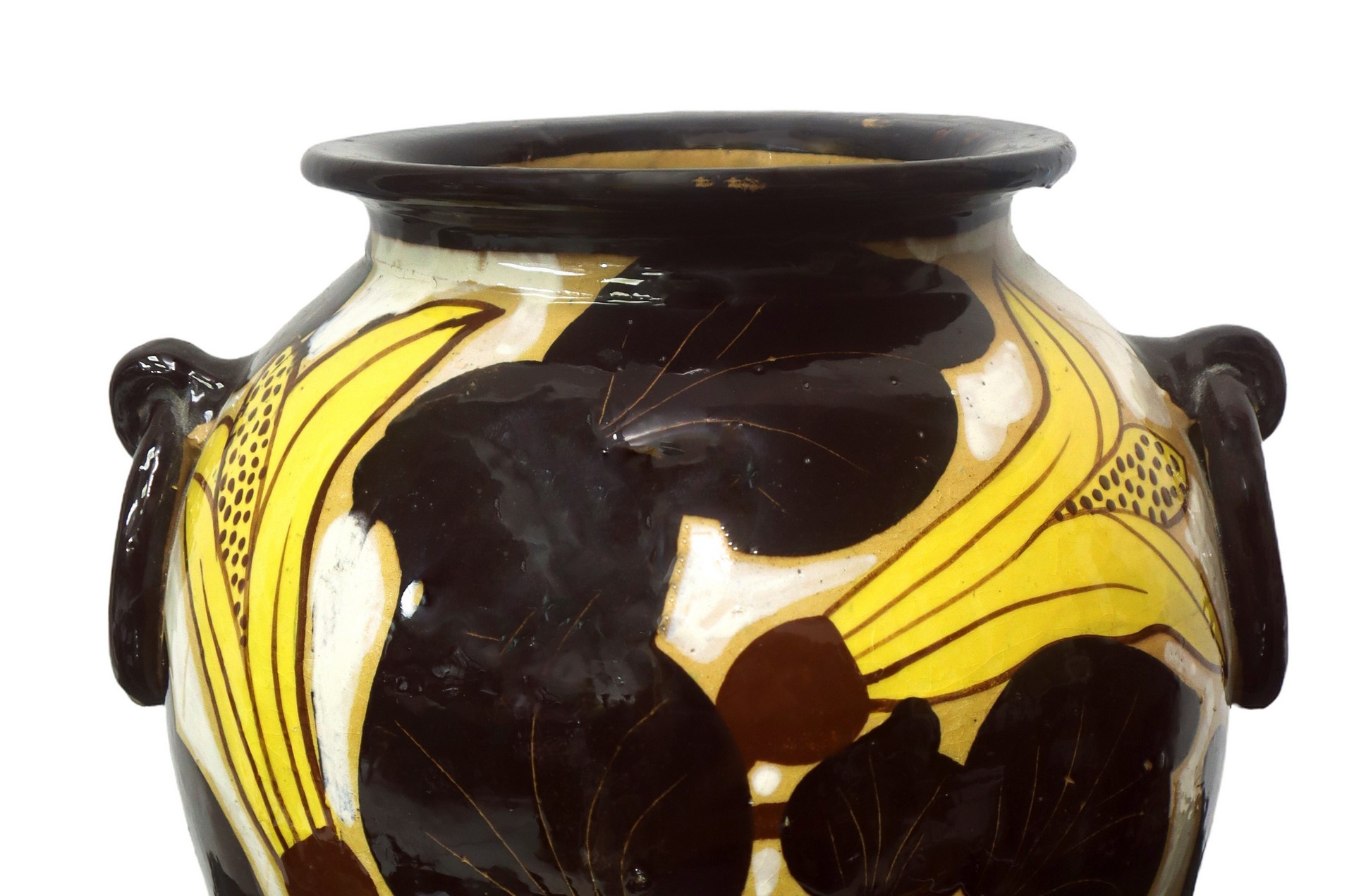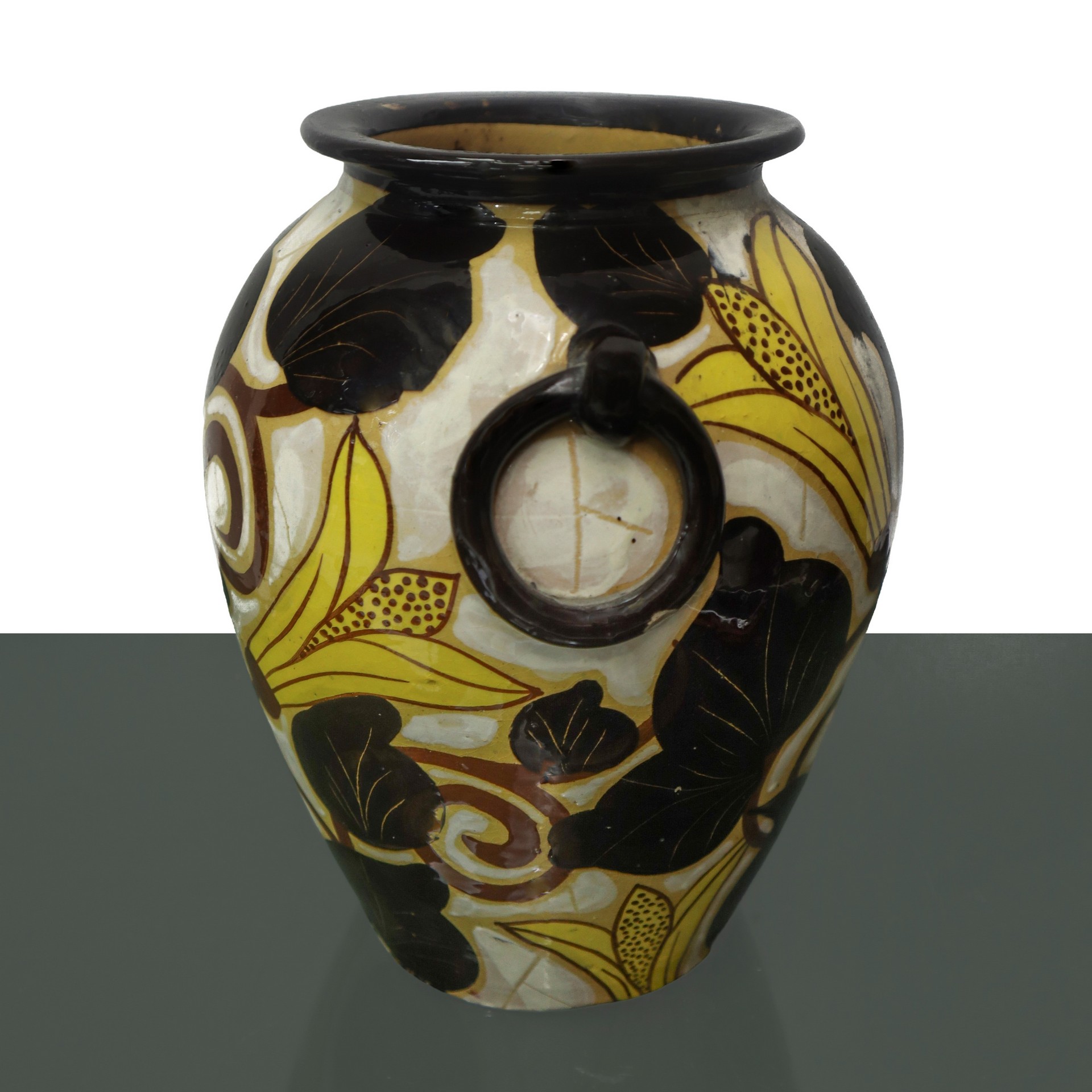 R. Bini & Fratelli Carmignani (Pisa 1905) - Vaso in terracotta invetriata Liberty Art Deco' con decori di fiori e foglie gialli e marroni, 1986