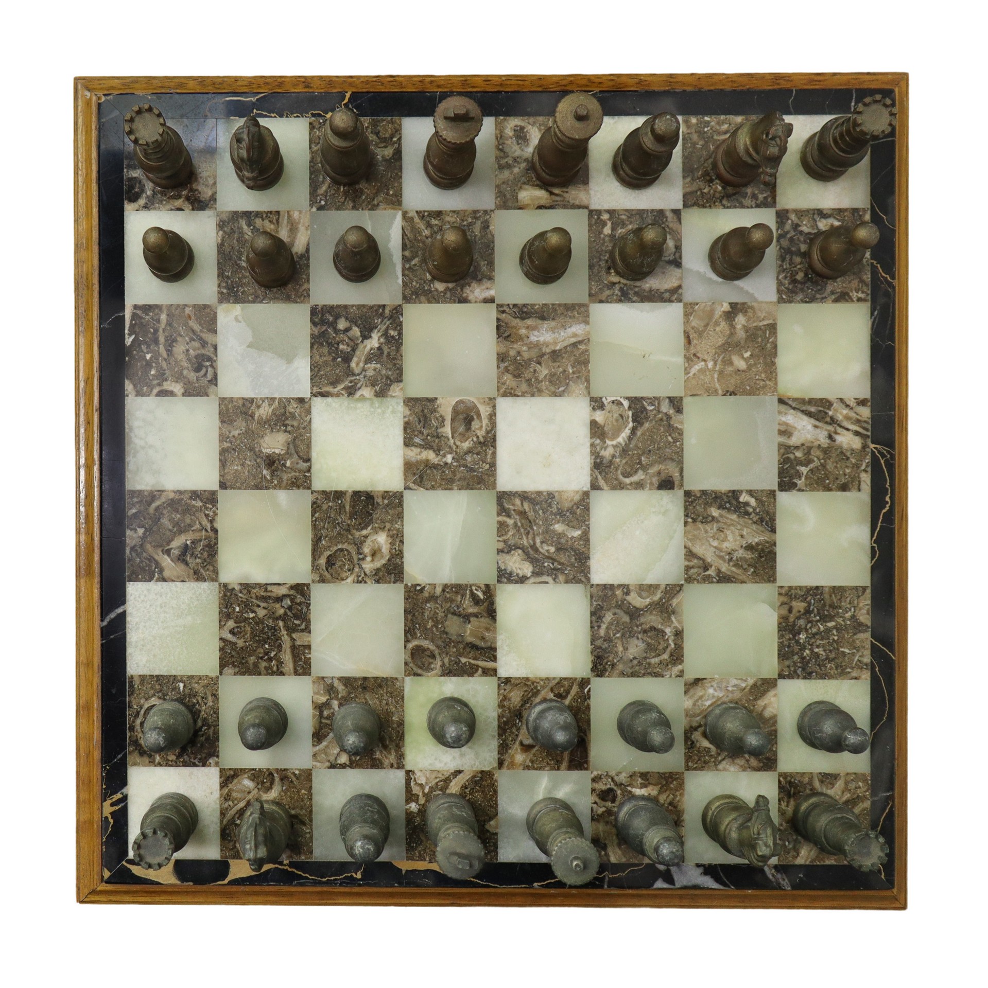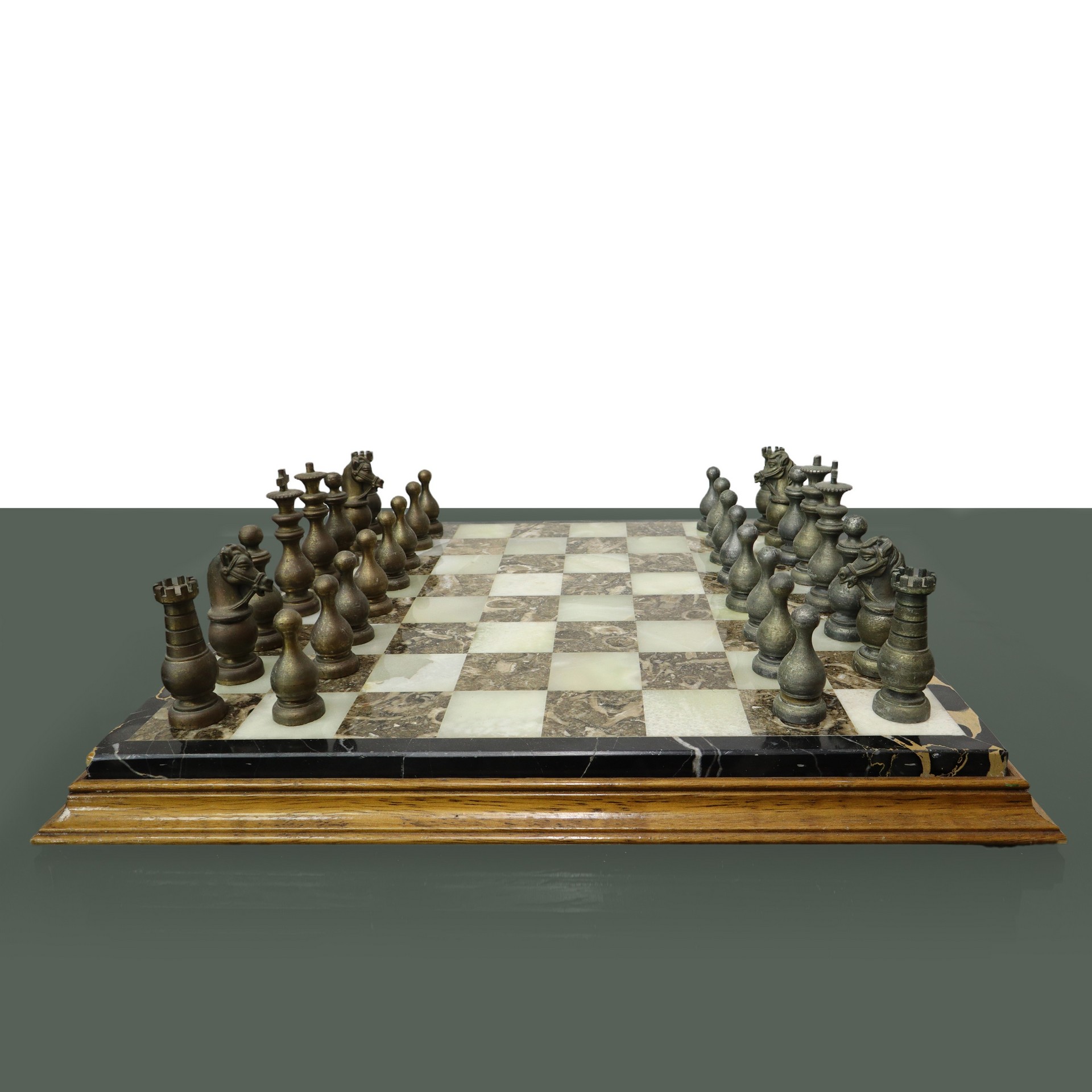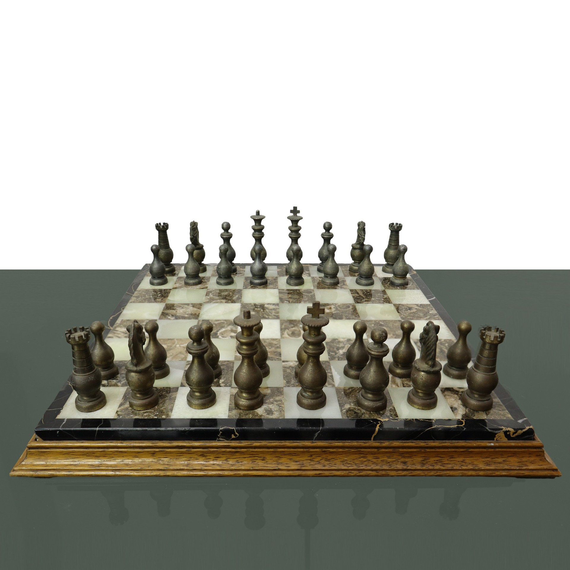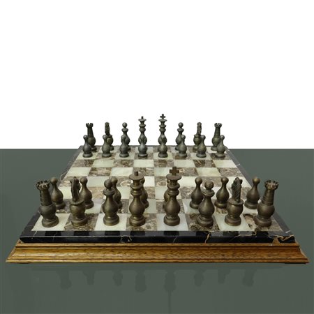 Scacchiera in alabastro con scacchi in metallo cm 28x38
