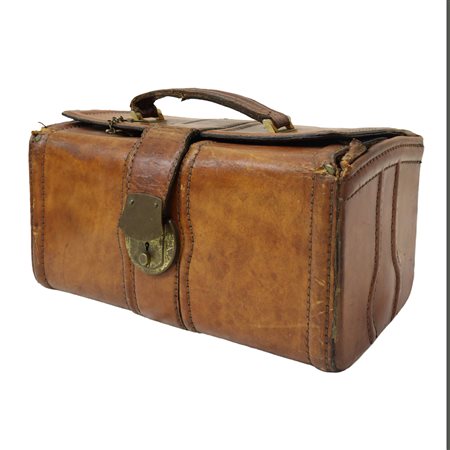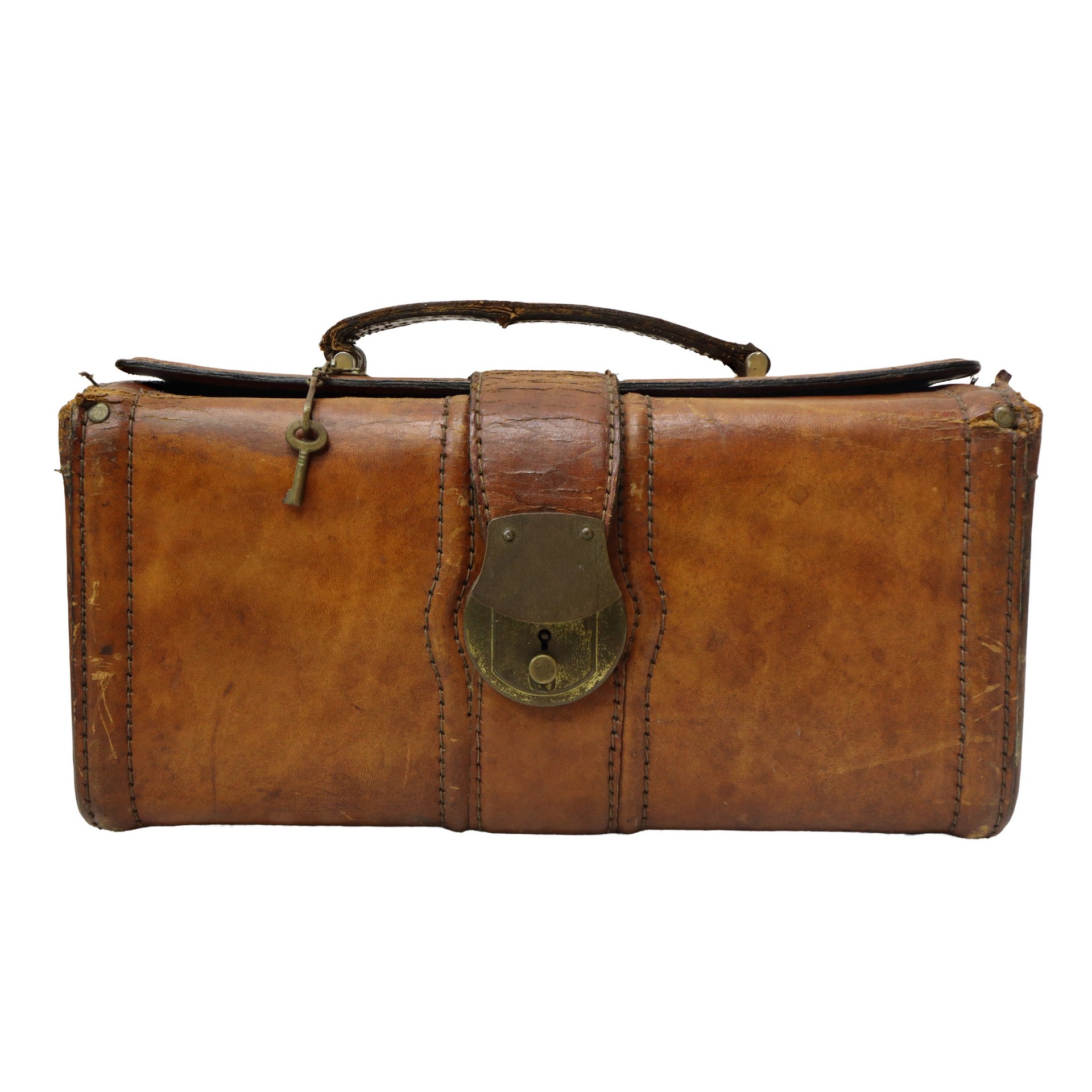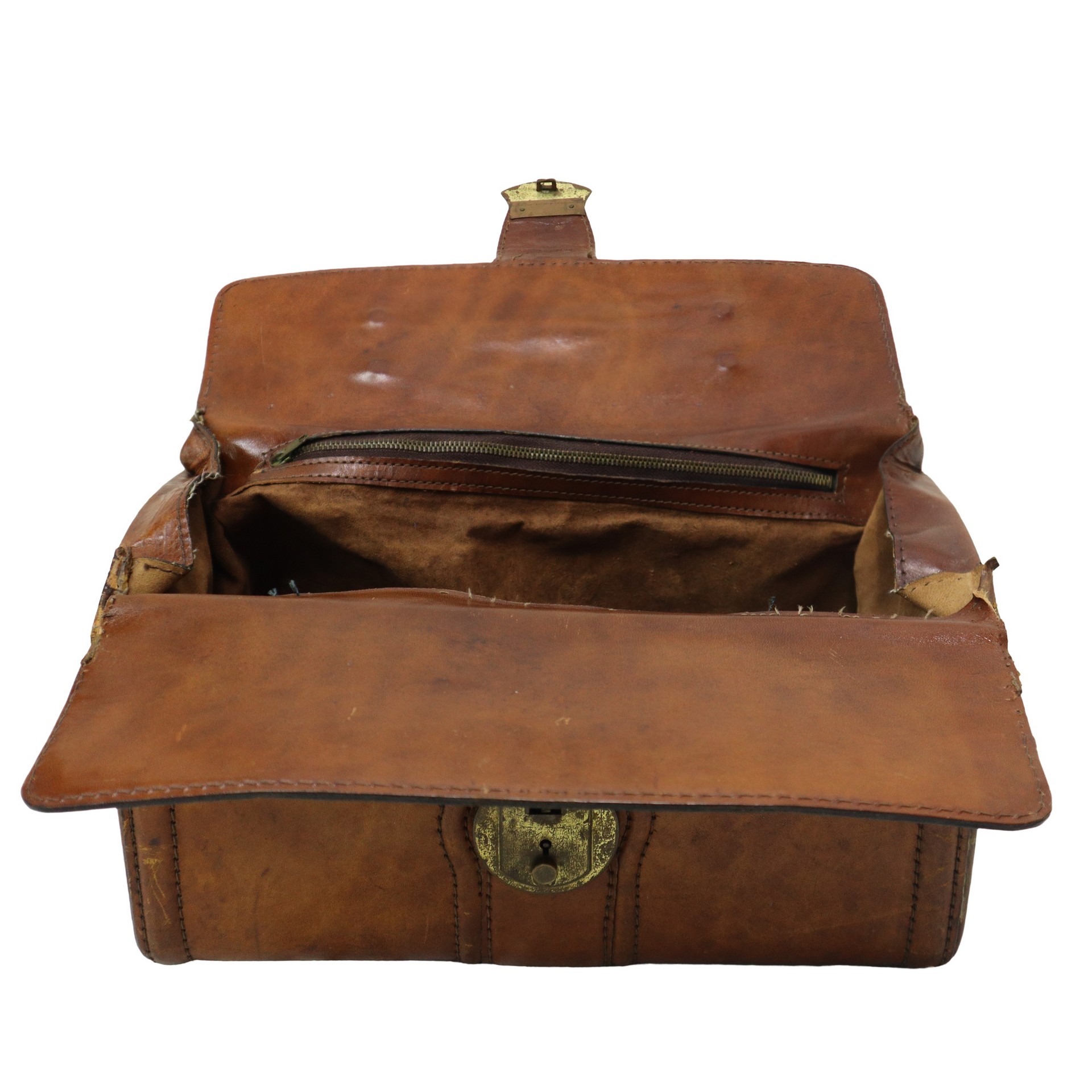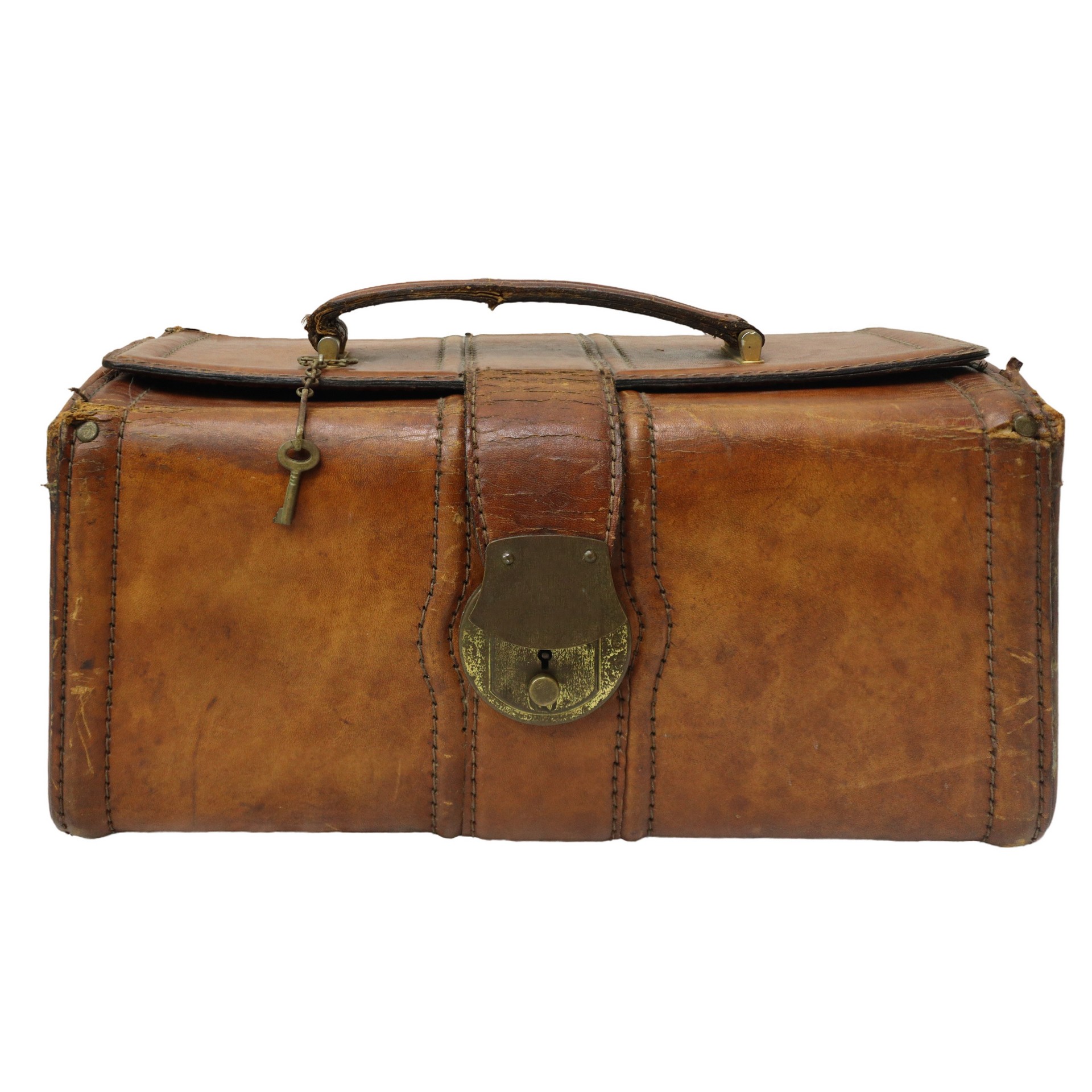 Borsone in cuoio necessaire H cm 16x31,5x16,5 Con chiave legata al manico, piedini in metalloCon chiave legata al manico, piedini in metallo
