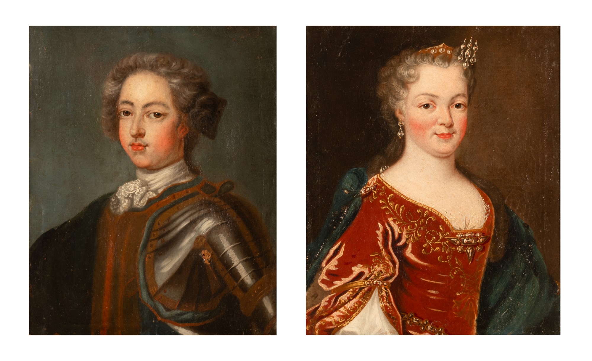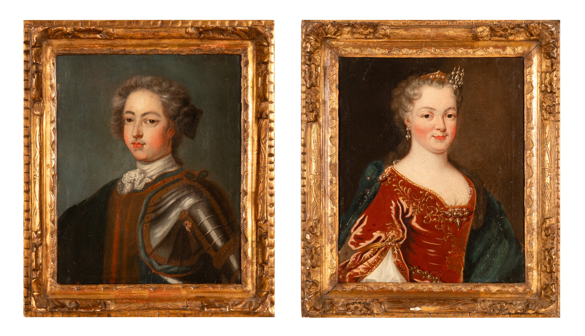 Coppia di dipinti olio su tela raffiguranti Luigi XV di Borbone e la regina consorte Maria Leszczynska figlia del Re di Polonia Stanislao I