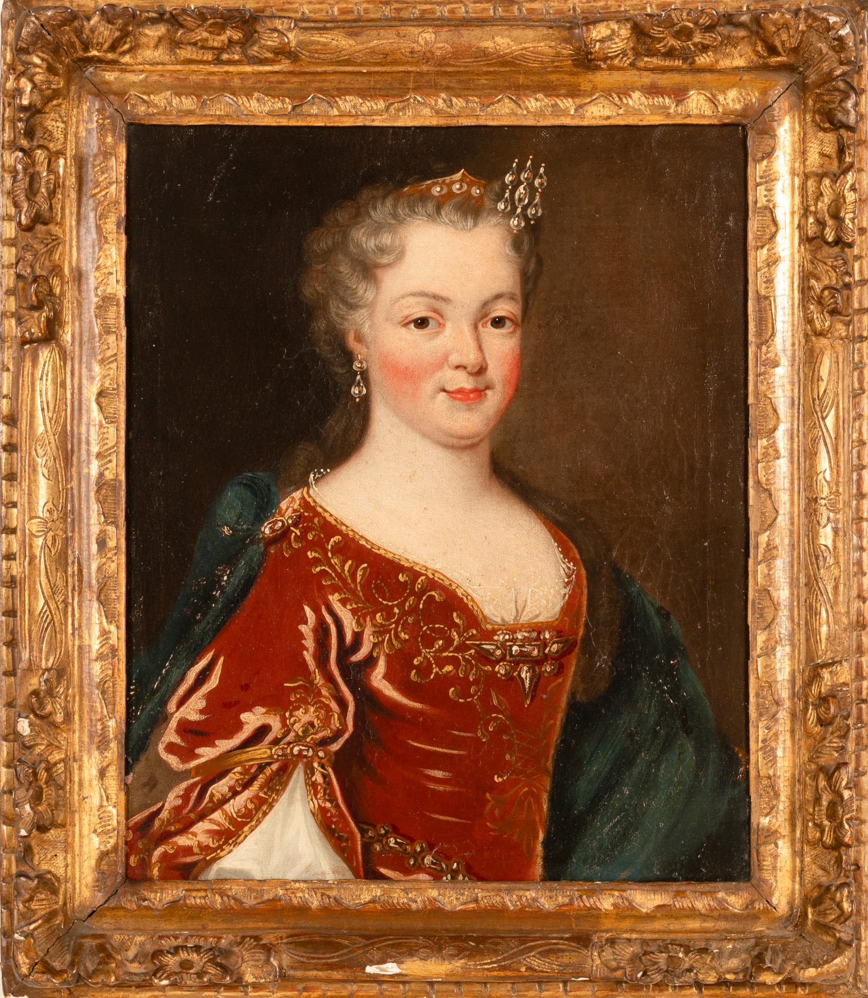 Coppia di dipinti olio su tela raffiguranti Luigi XV di Borbone e la regina consorte Maria Leszczynska figlia del Re di Polonia Stanislao I Pierre Gobert (probabilmente_dapres)