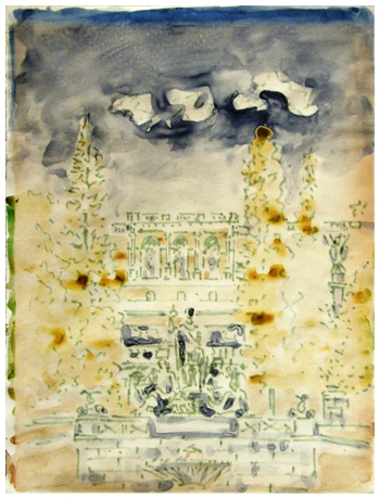 ORFEO TAMBURI Jesi 1910 – Parigi 1994 Il Pincio da Piazza del Popolo 1969 T.m. su carta 22 x 17. Titolo e data sul cartoncino di fondo.
