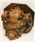 Coppia di mensole esagonali in legno finemente intagliato e dorato con testa di cherubino al fronte e decoro a volute mistilinee ai lati. XVII secolo