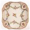 Piccolo vassoio quadrato in porcellana Sevres con decoro a treillage alternato da riserve con mazzetti floreali di rose unite da ghirlande.