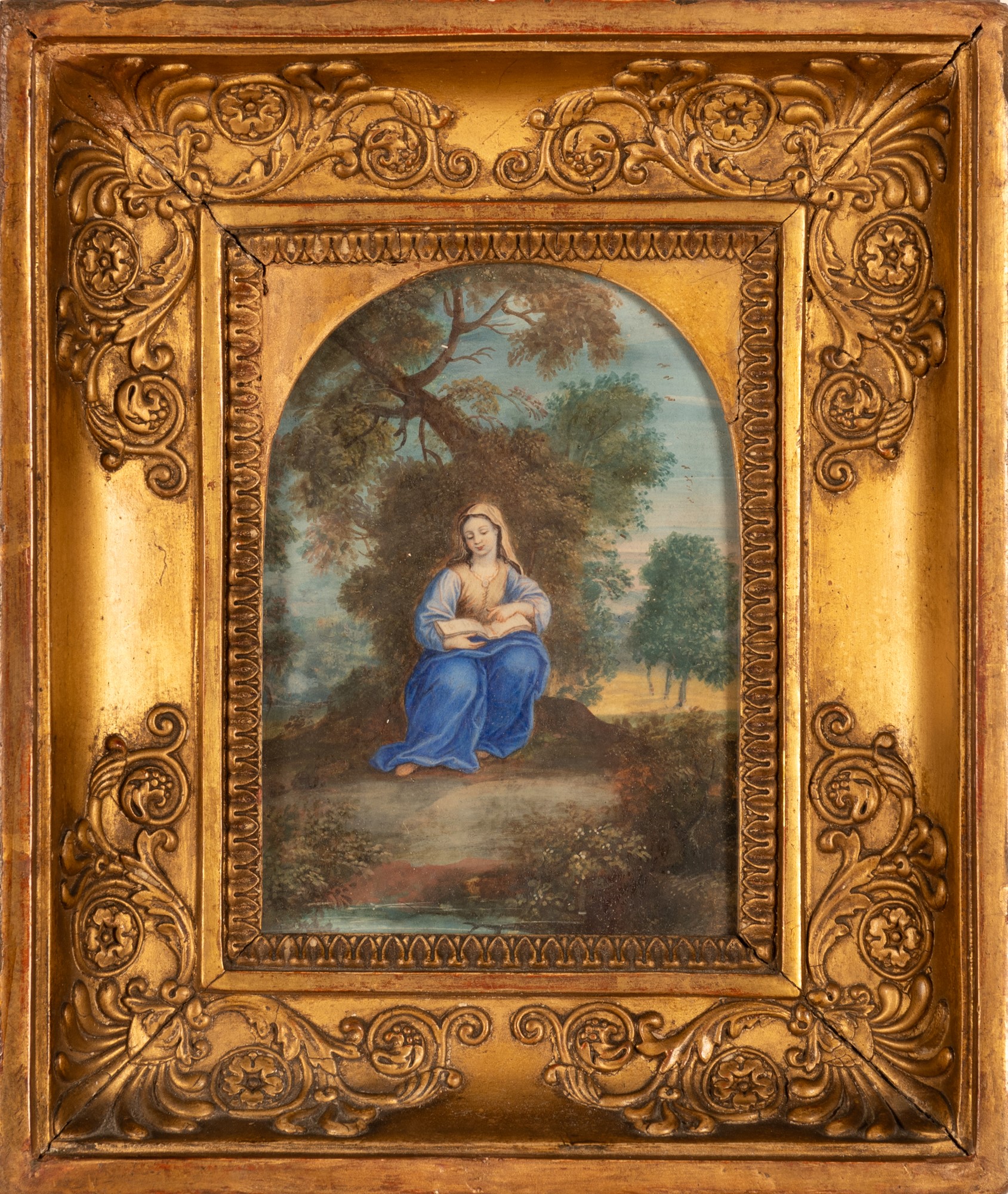 Figura femminile velata con libro aperto tra le mani in paesaggio agreste Pittore dell'Italia centrale del XVIII secolo