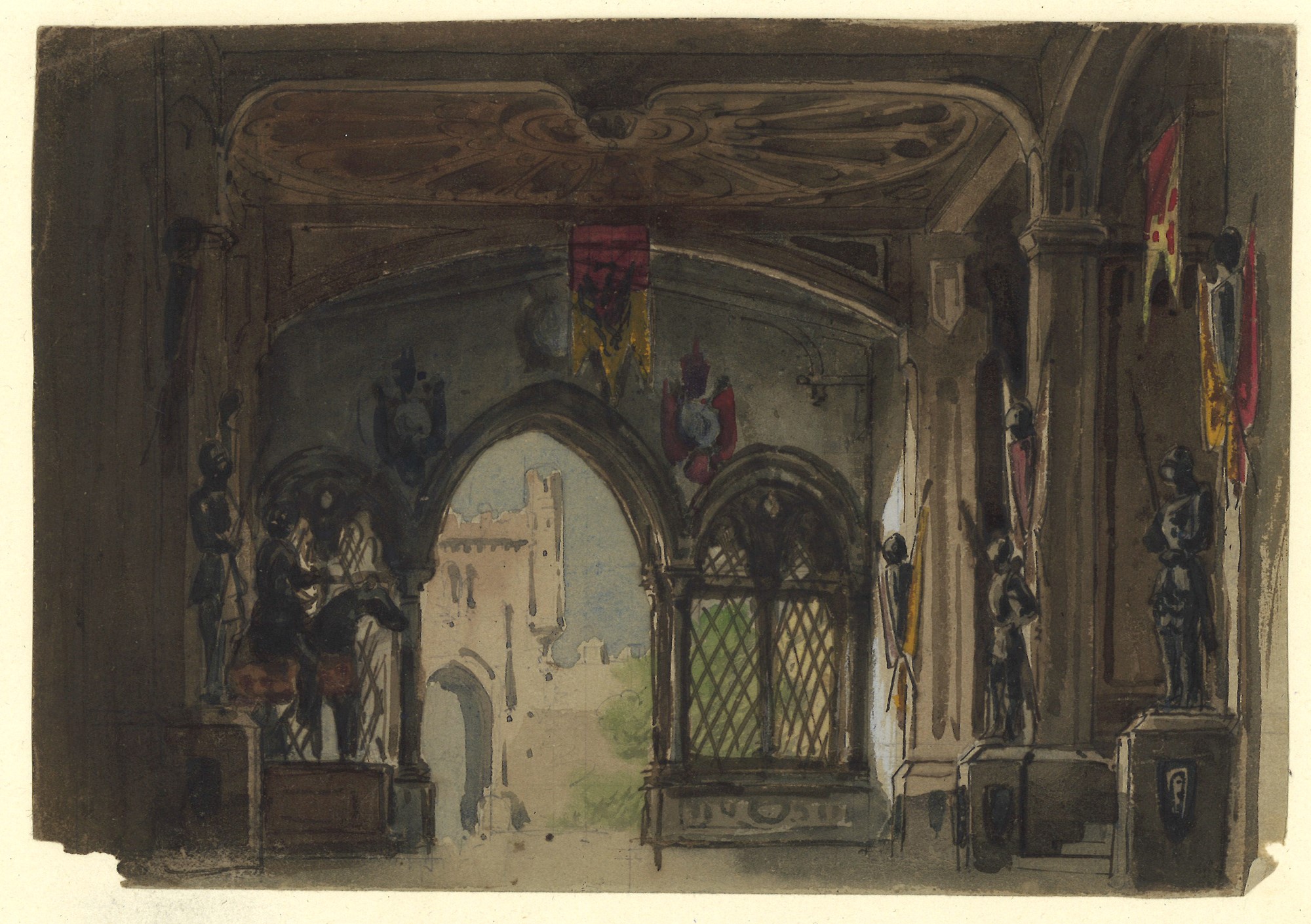 Ingresso di una dimora signorile con armature e gonfaloni Luigi Ambrogio Scrosati