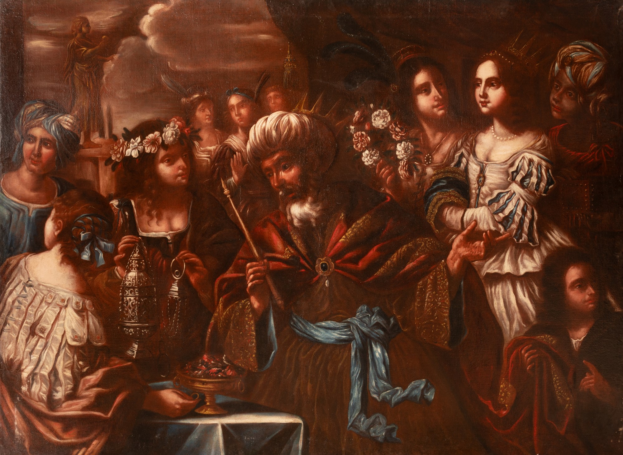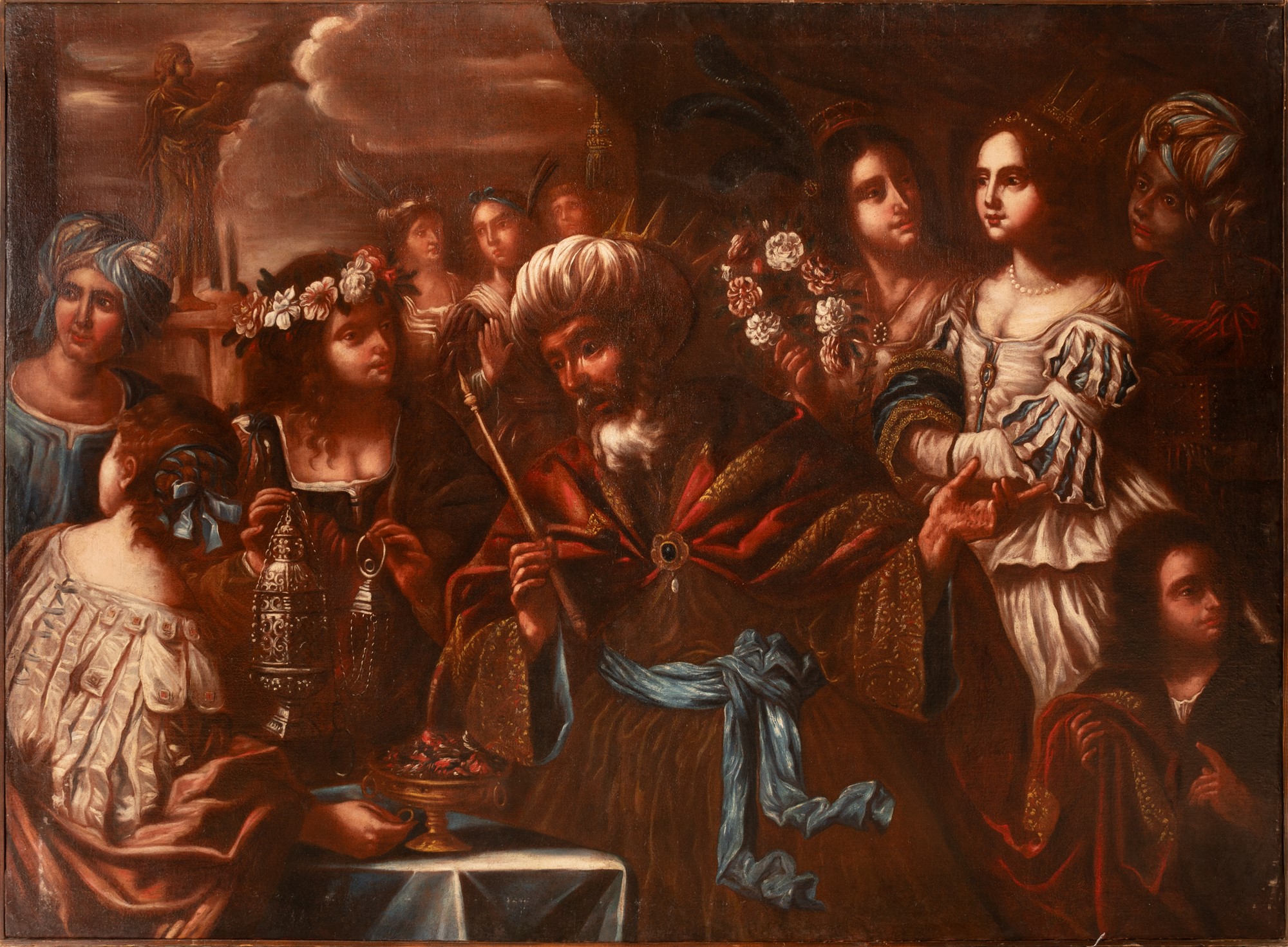 Re Salomone portato in tarda età all'idolatria dalle sue mogli Francesco Del Cairo (seguace di)