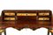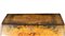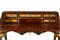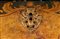Sportello a calatoio a celare un piano in finto marmo rosso sul quale insistono due piani nei quali sono stati ricavati al centro un cassetto lungo sopra un vano vuoto delle stesse dimensioni e due cassetti per lato, tutti dipinti finemente a vedute di paesaggi.