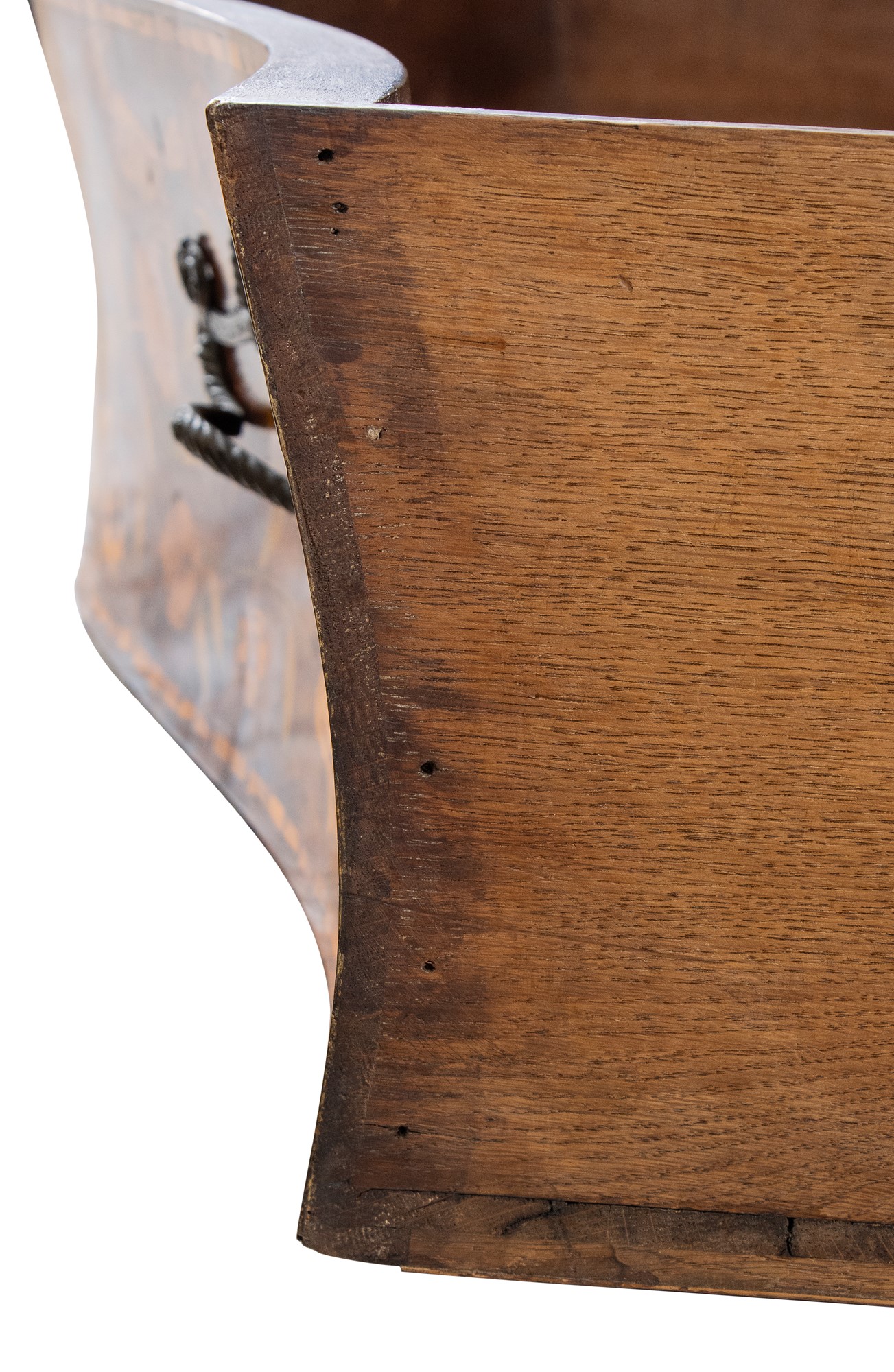 Grambiule intarsiato terminante al centro con intaglio in noce ebanizzato con anfora e girali.