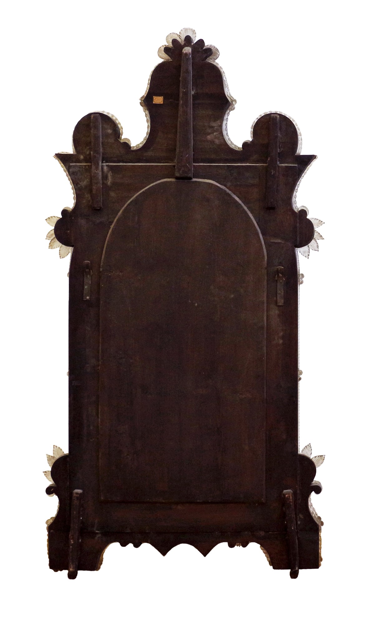 Grande specchiera a cartiglio in vetro di Murano decorato in foglia d'oro con motivi floreali incisi. inizi del XX secolo