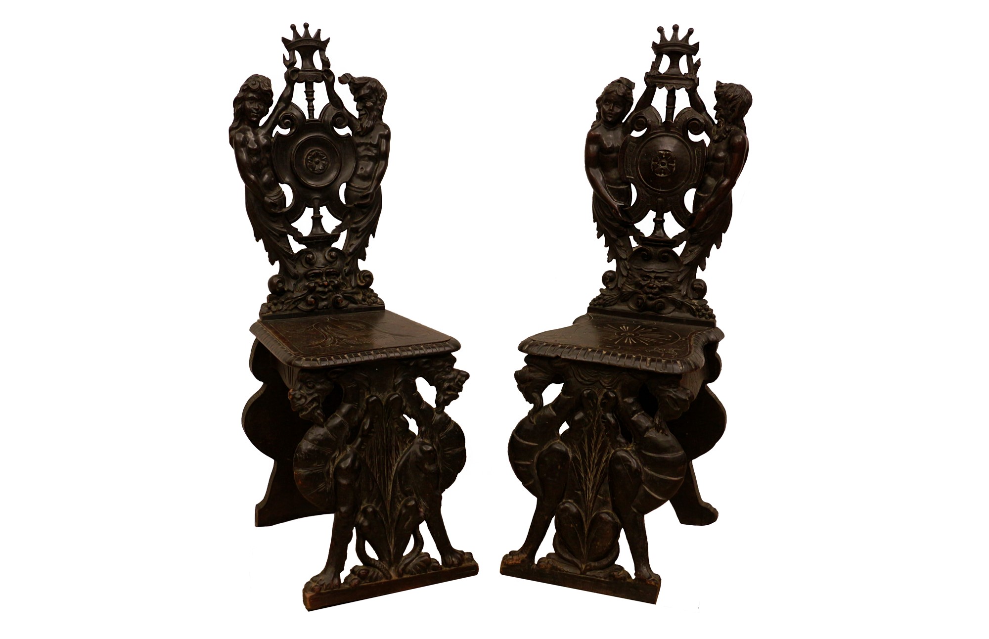 Coppia di scranni "Lui e Lei", Veneto, XIX secolo