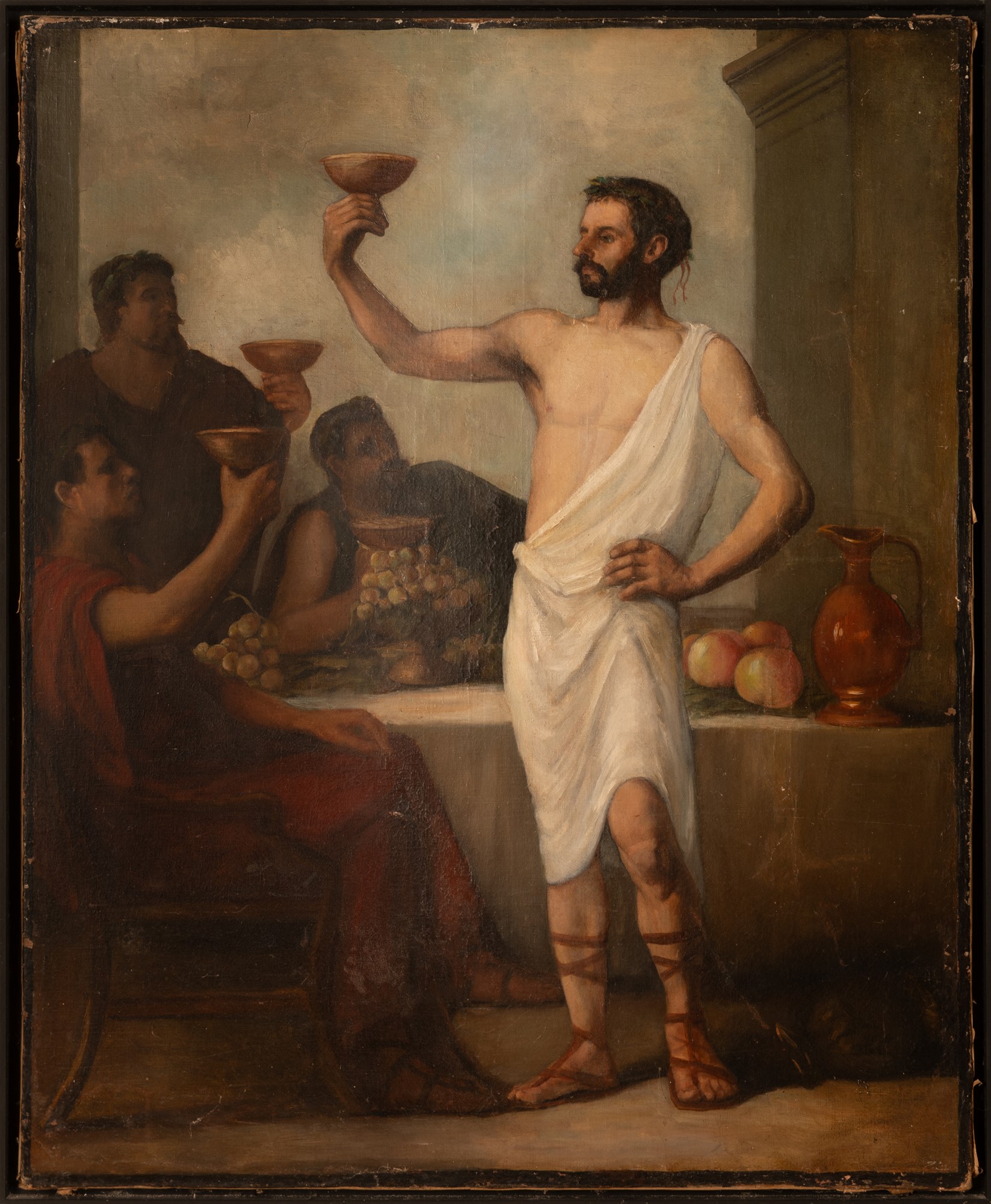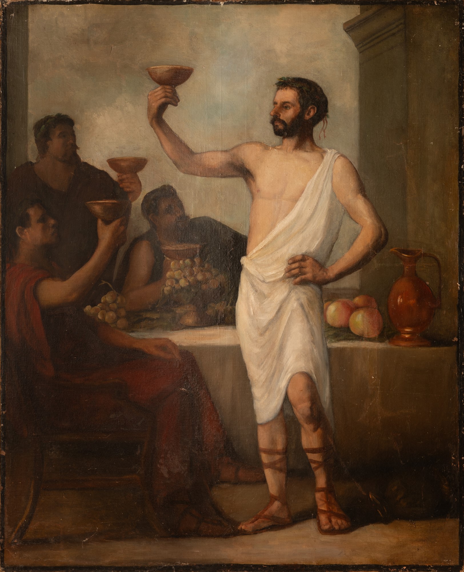 Dipinto uomo che reca in mano coppa di libagioni Scuola europea della fine del XVIII secolo e inizi del XIX secolo