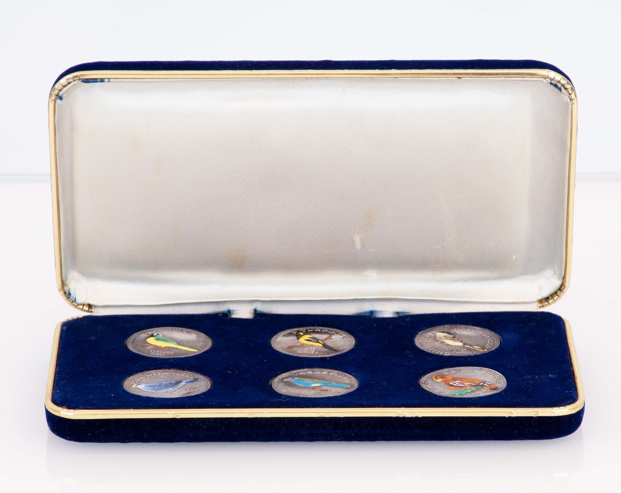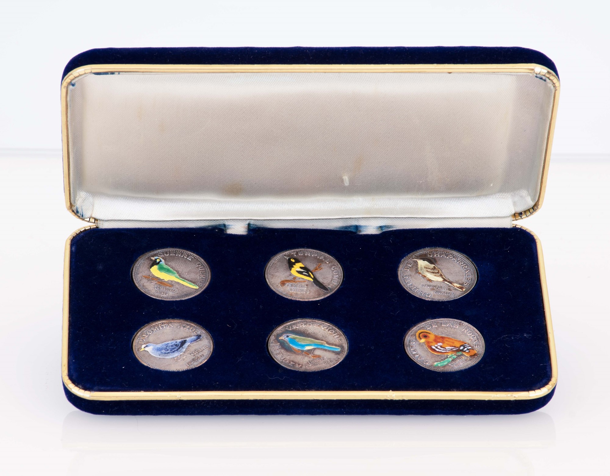 Vassoio 6 monete raffiguranti uccelli XX secolo