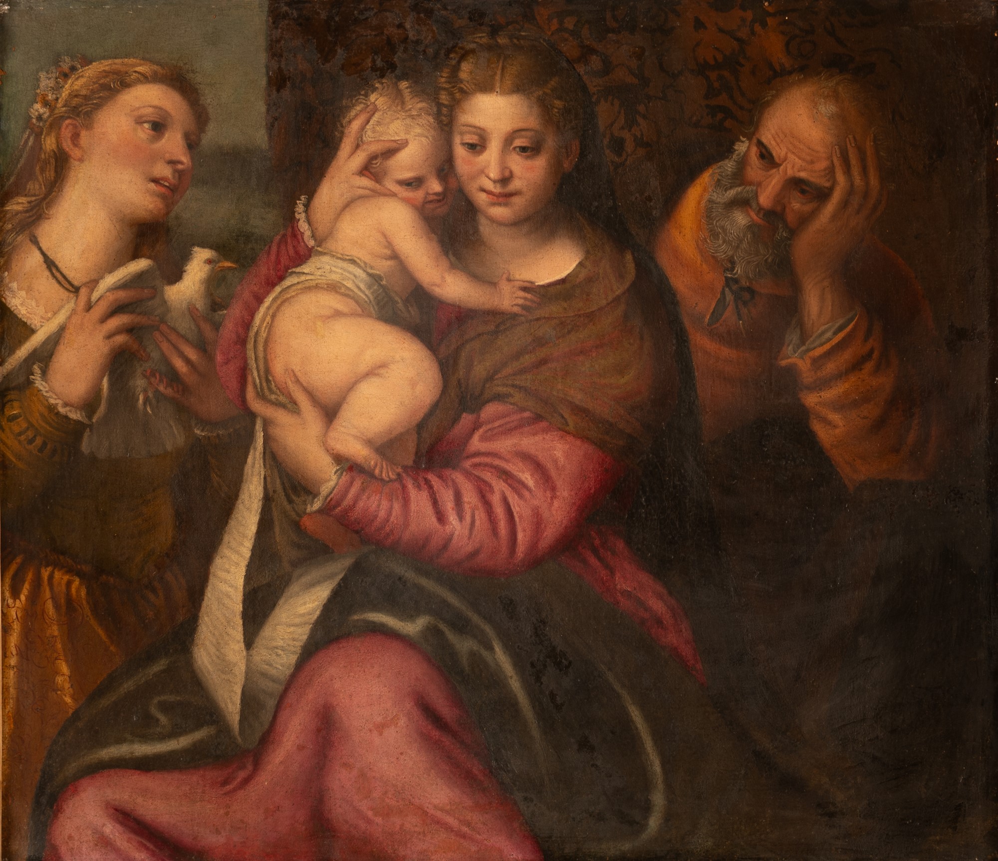 Sacra famiglia con Santa Colomba Paris Bordon (attribuito a)