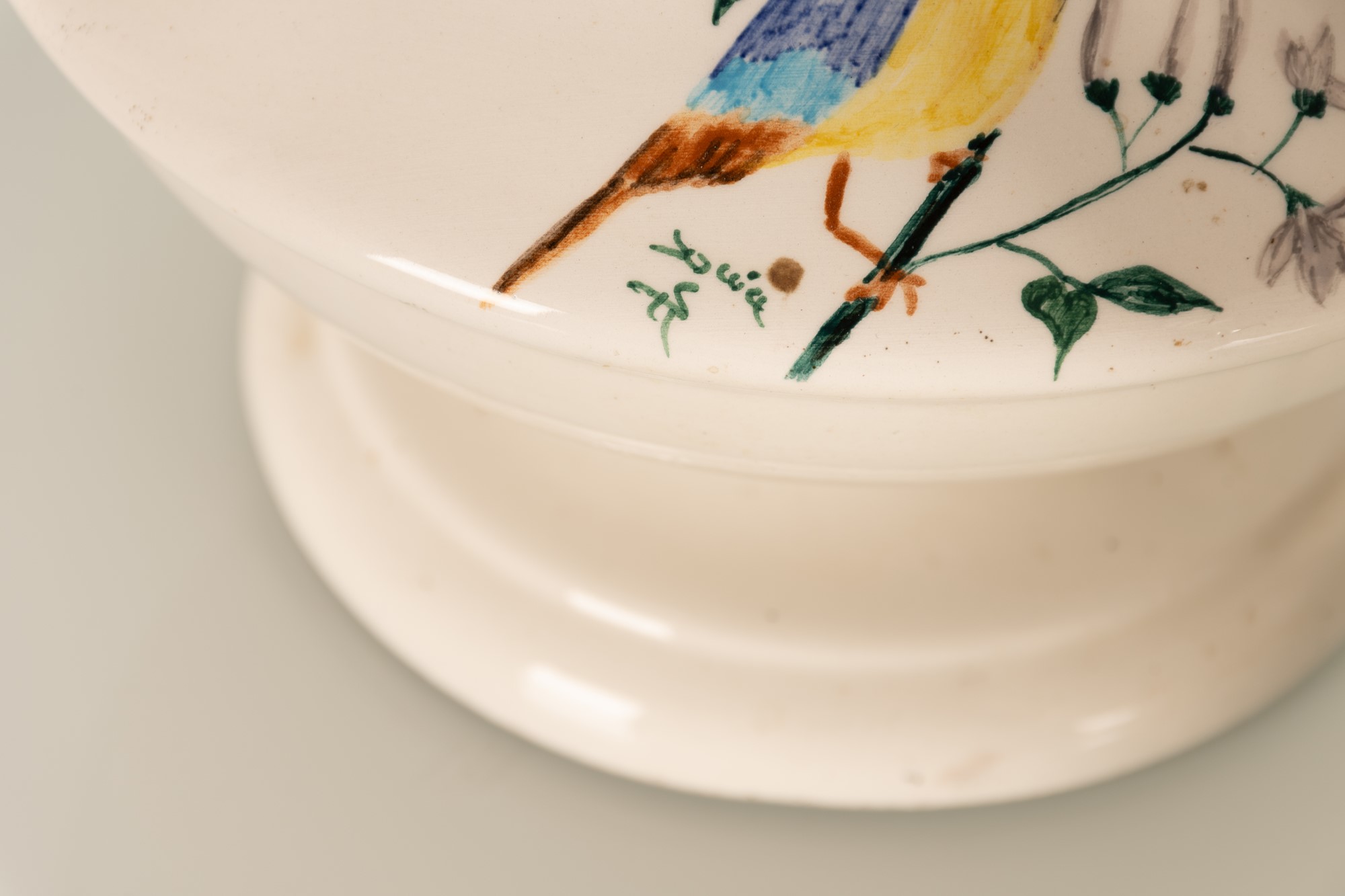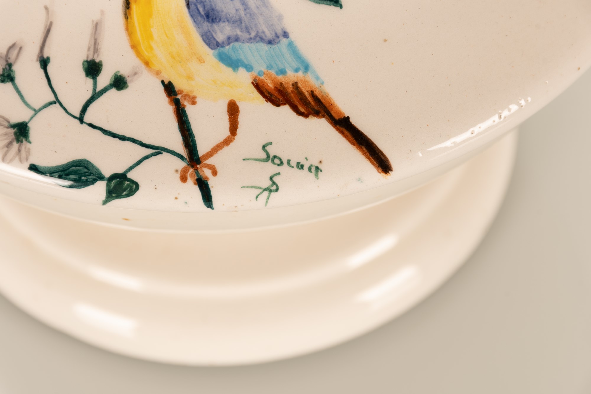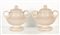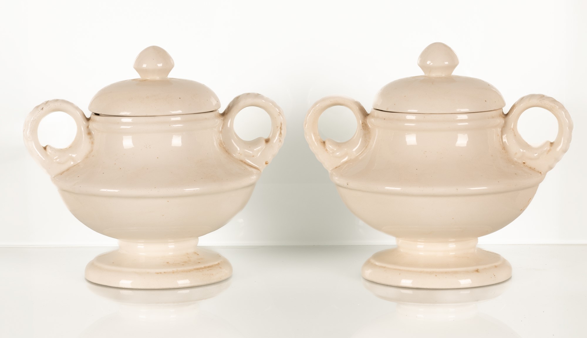 Coppia di vasi biansati con decoro a uccello.
