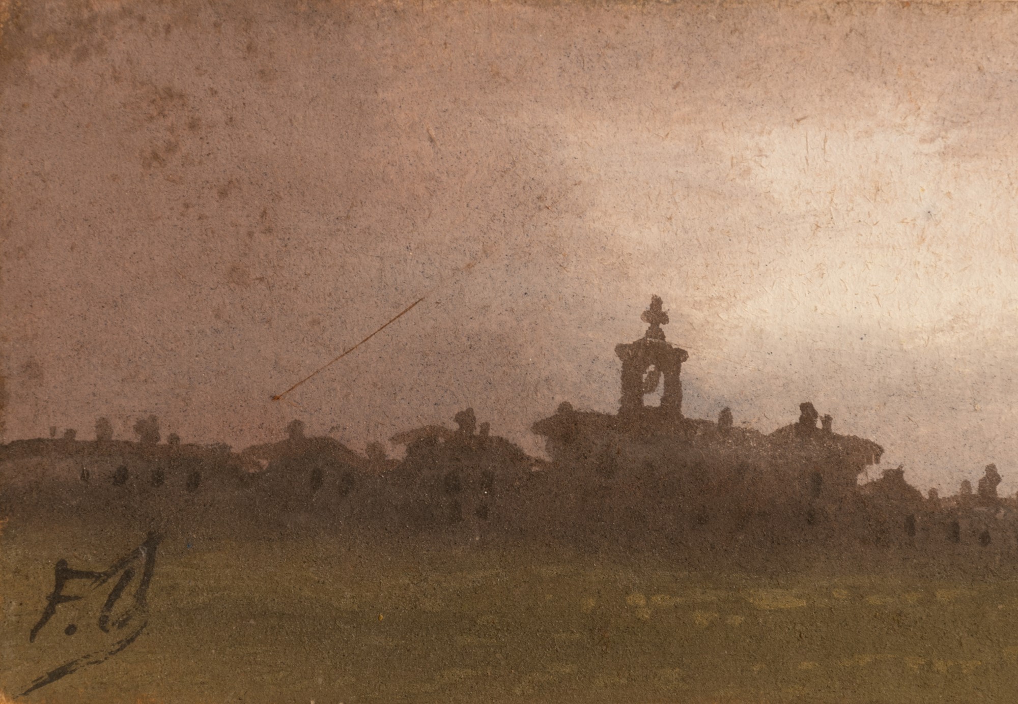 acquerello su cartoncino Monogramma in basso a sinistra "F.D."