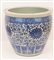 Grande cachepot porta vaso in ceramica bianca con decoro in arabeschi fiori stilizzati azzurri