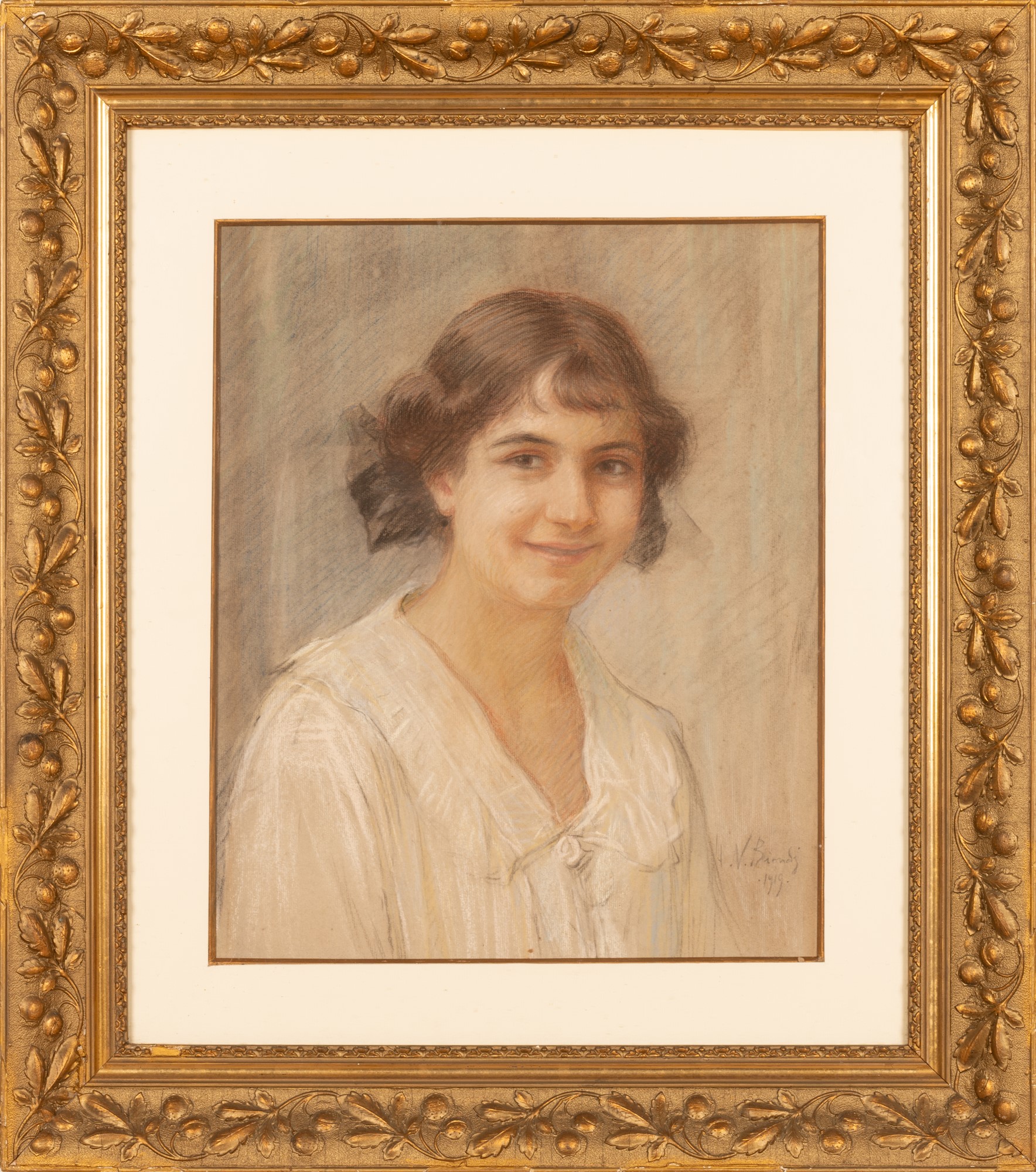Lotto 238 | dipinto ritratto di ragazza Nicola Biondi