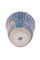 Coppia di vasi in porcellana decorata nei toni del blu, celeste e giallo con particolari motivi che corrono lungo il corpo e il coperchio. Presa a pomo allungato dorato. XIX Sec.