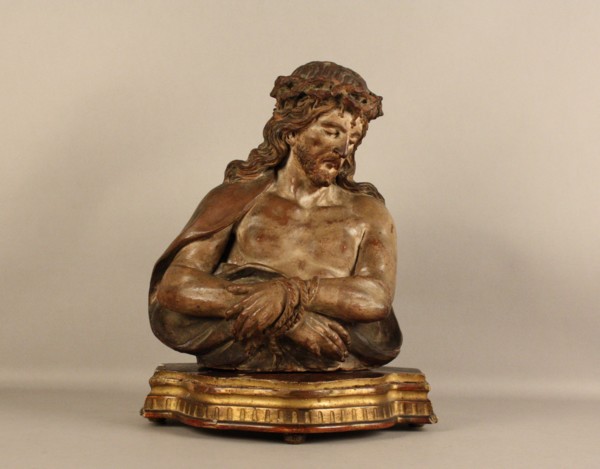 Datato. CERCHIA DI MAZZA MARIA GIUSEPPE - Bologna, 1653-1741. Scultura in terracotta raff. ''ECCE HOMO''. Restauri. Mis. Lung. cm. 21 Alt. cm. 28 ca.
