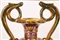 Anse serpentiformi a volute, decoro neorinascimentale con due medaglioni tondi centrati su fondo bianco: in uno figura di condottiero romano, nell'altra profilo muliebre tra la scritte in caratteri capitali "MAURA" ripartita in un decoro ad acacie.