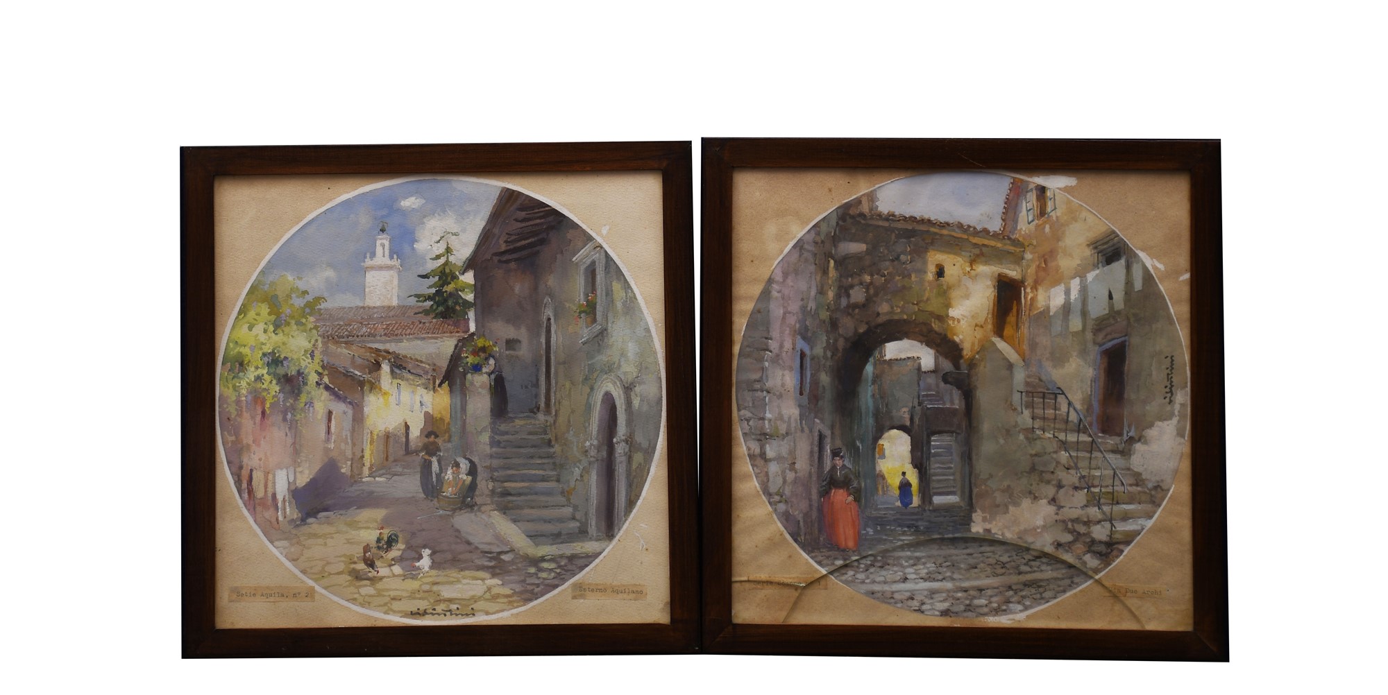 Coppia di acquerelli raffiguranti scorci di Scanno e di L'Aquila Carminio Visintini