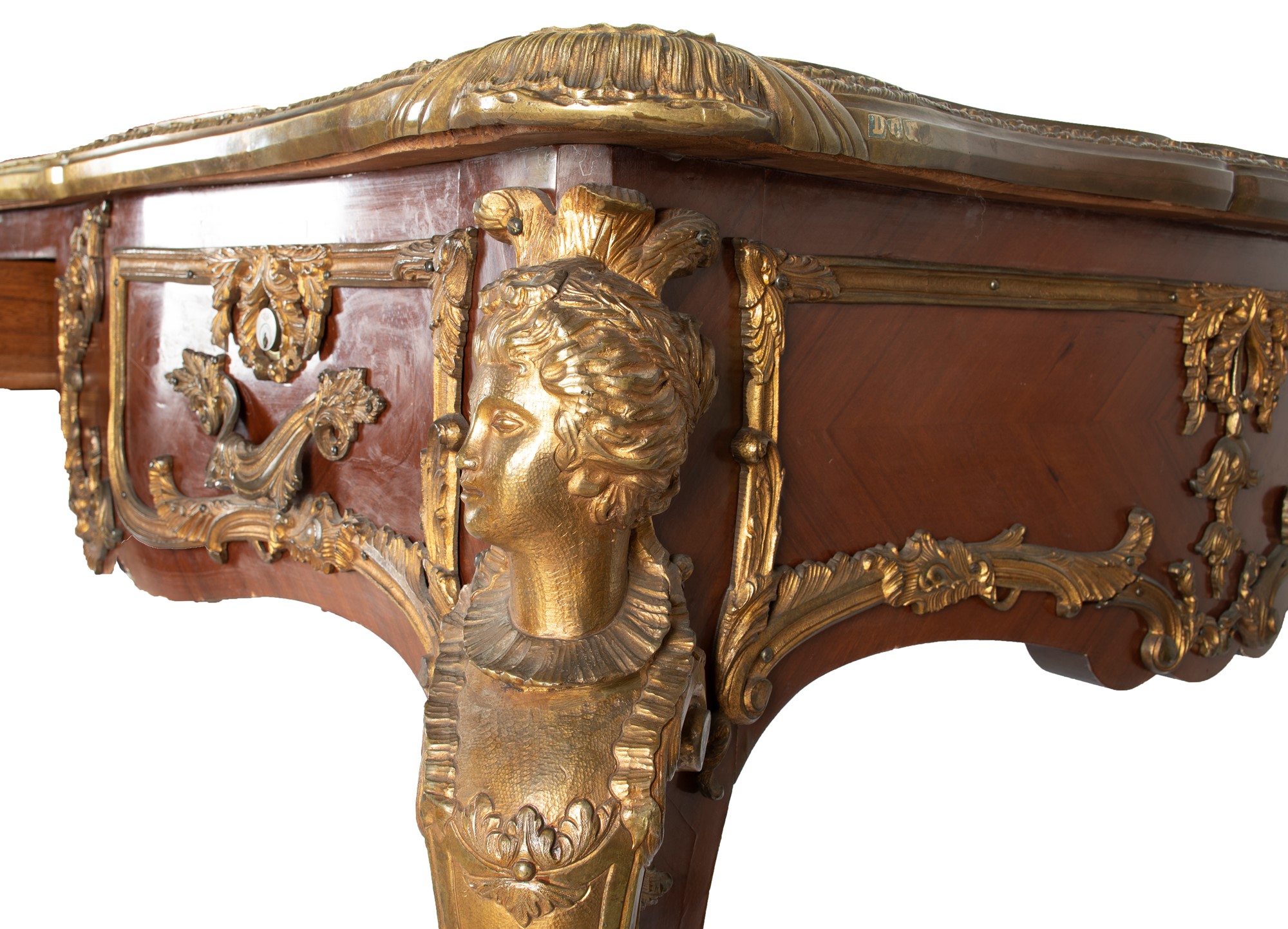 Tavolo Bureau Plat con applicazioni in bronzo doratO. Manifattura francese dell'ultimo quarto del XIX secolo e gli inizi del XX secolo