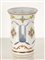 Vaso in porcellana bianca e vetro finemente decorato con festoni floreali ed inserti