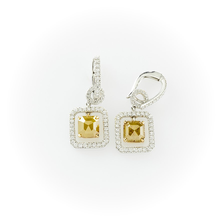 Orecchini in oro bianco con diamanti ice taglio princess e diamanti bianchi taglio brillante