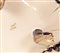 Il decoro è di gusto rinascimentale e sulla tesa sono presenti raffaellesche, mentre al centro del cavo una scena galante tratta da un dipinto di Francois Boucher. Il decoro nell'insieme riprende le forme e gli stilemi della maiolica metaurense del primo '600.