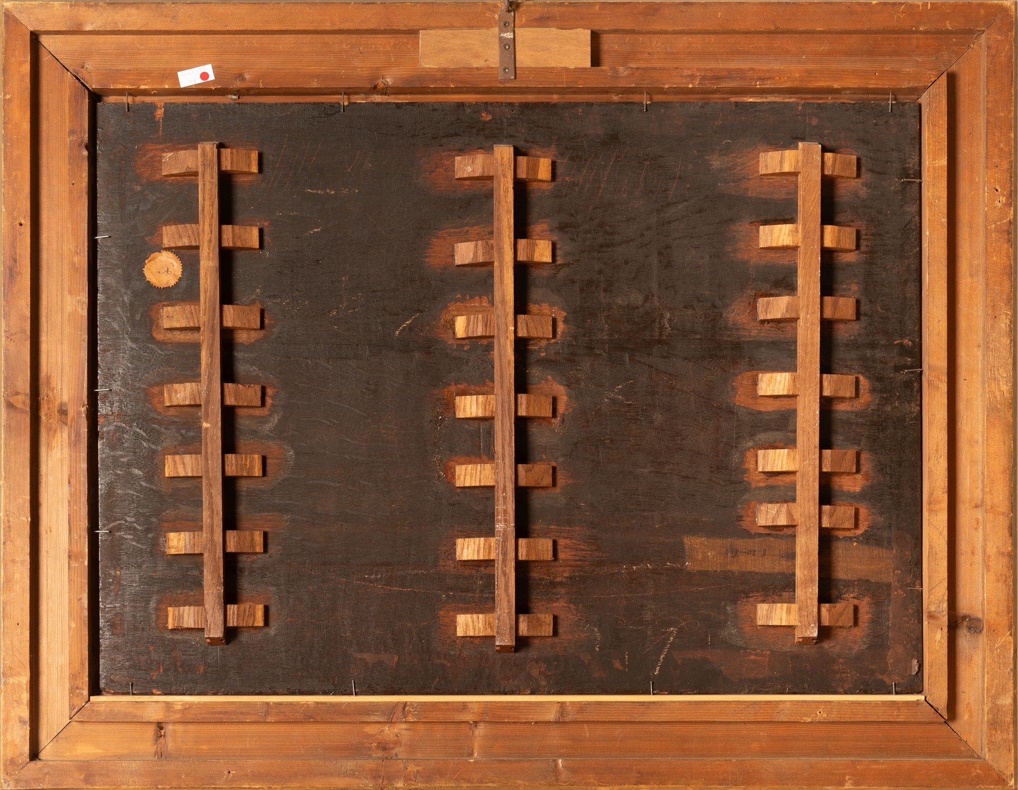 olio su tavola parquettato al retro cm 64,5x84,5; con cornice cm 83x109 Siglato in cima alla roccia con monogramma