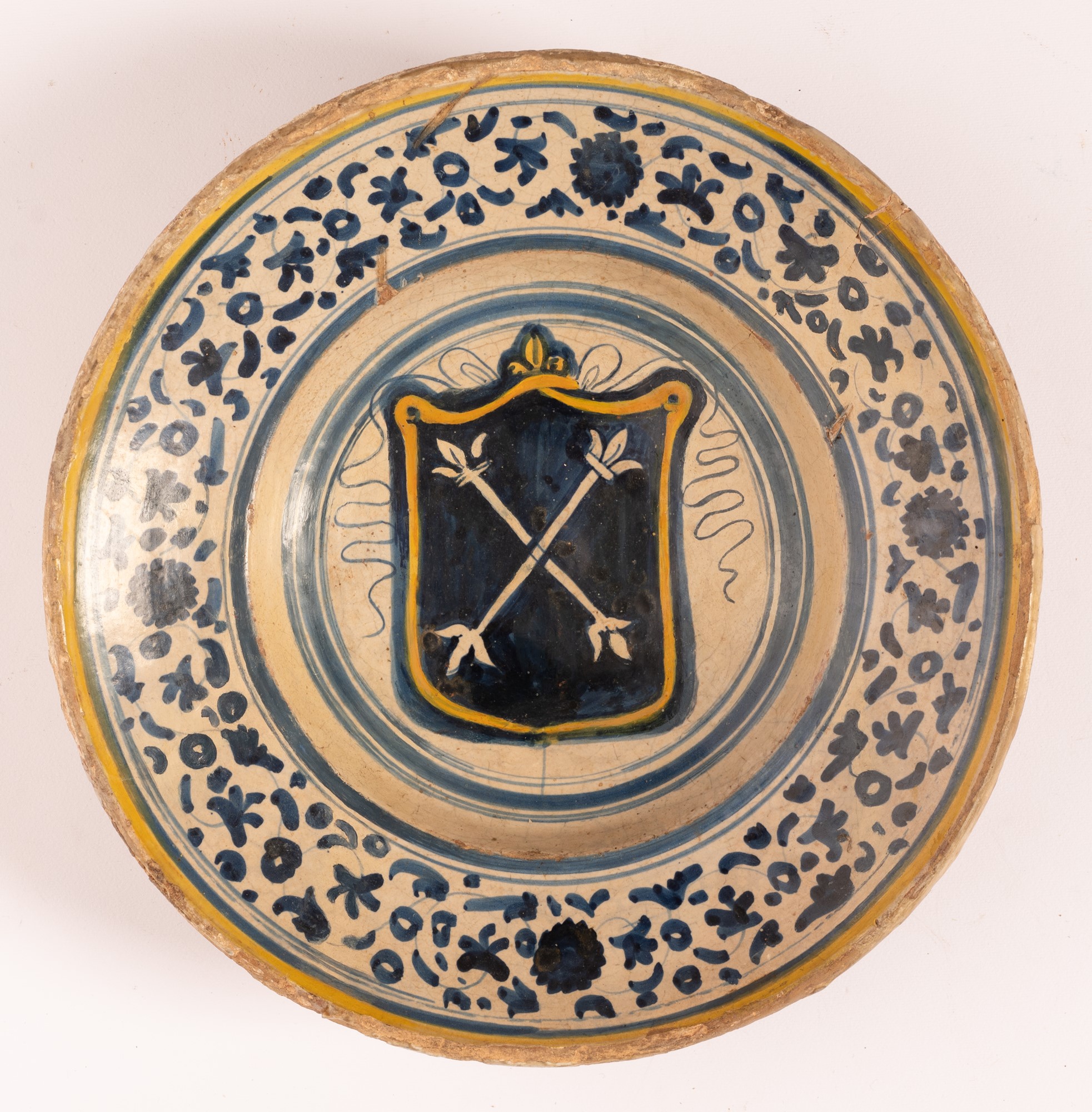 Piatto con decoro araldico.Manifattura di Faenza del XVIII secolo