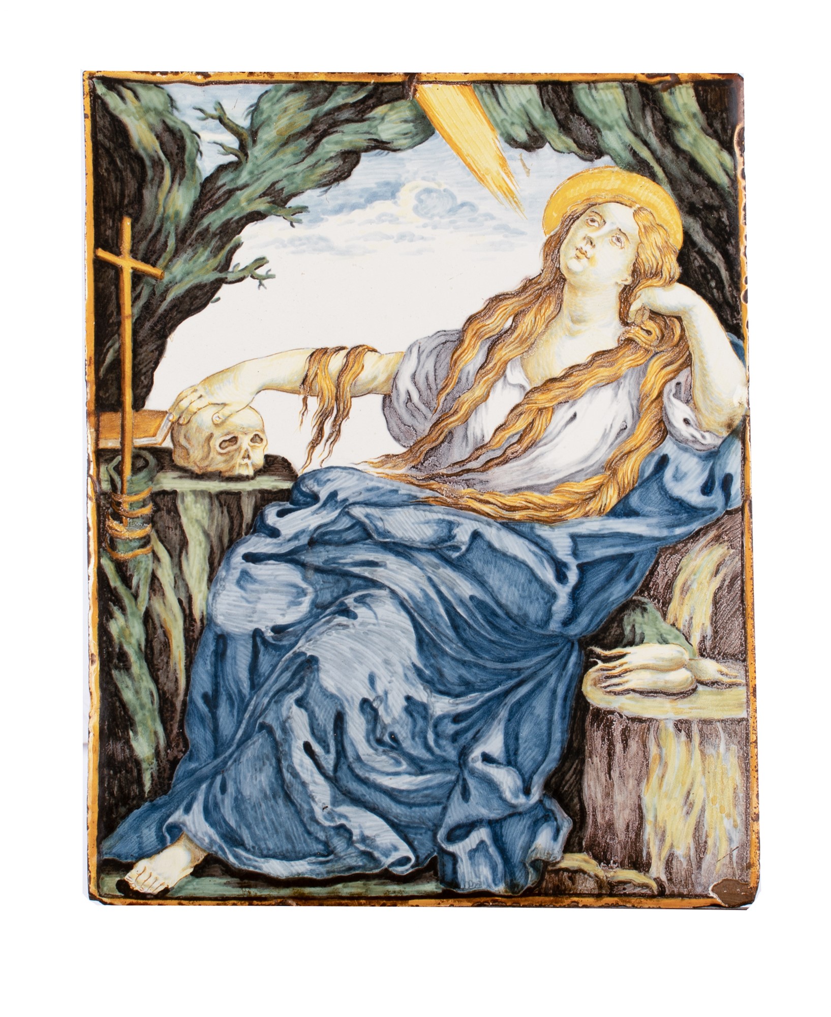Lotto 424 | Mattonella maiolicata rappresentante Maddalena penitente. Bernardino Gentili Il Giovane