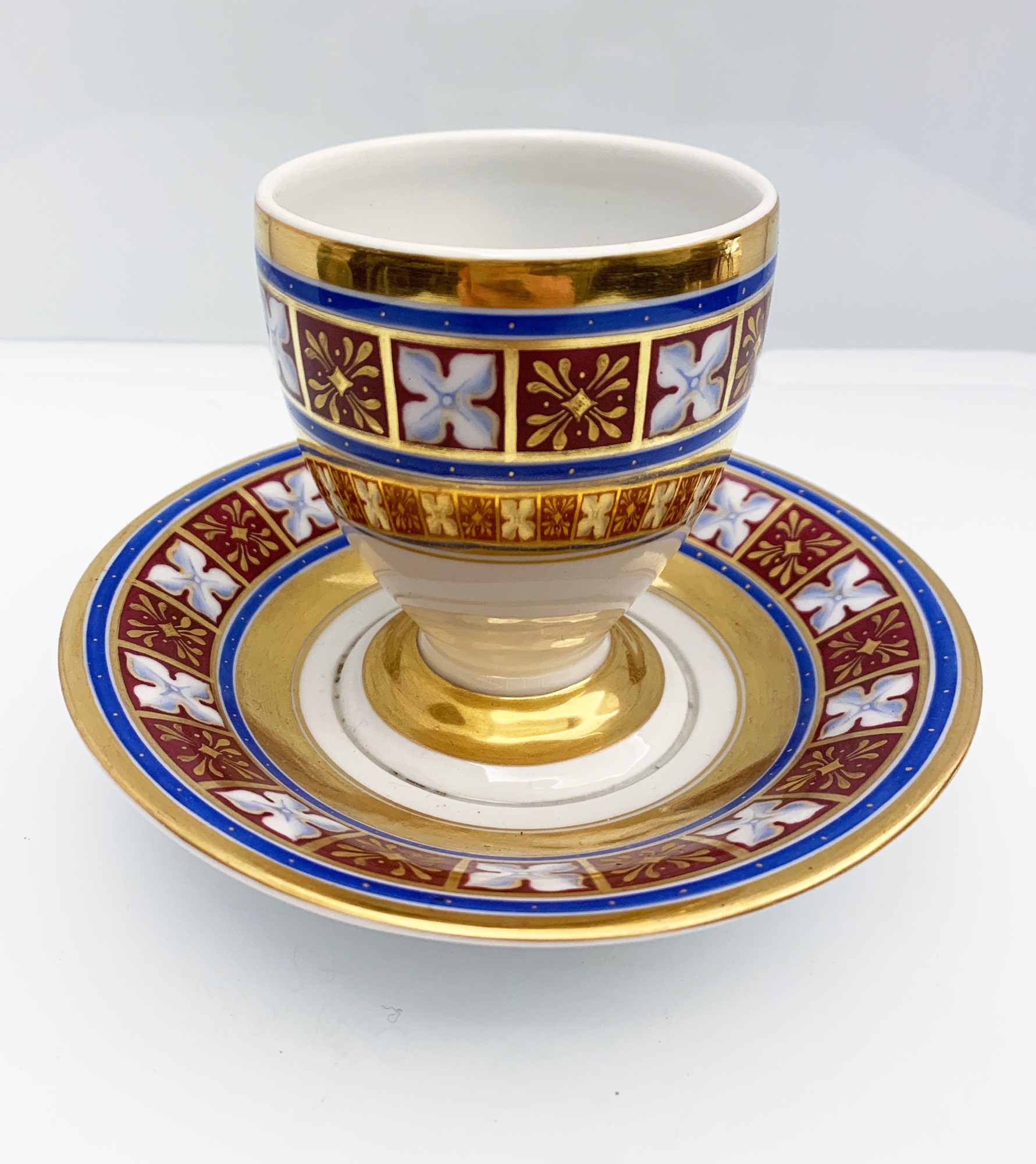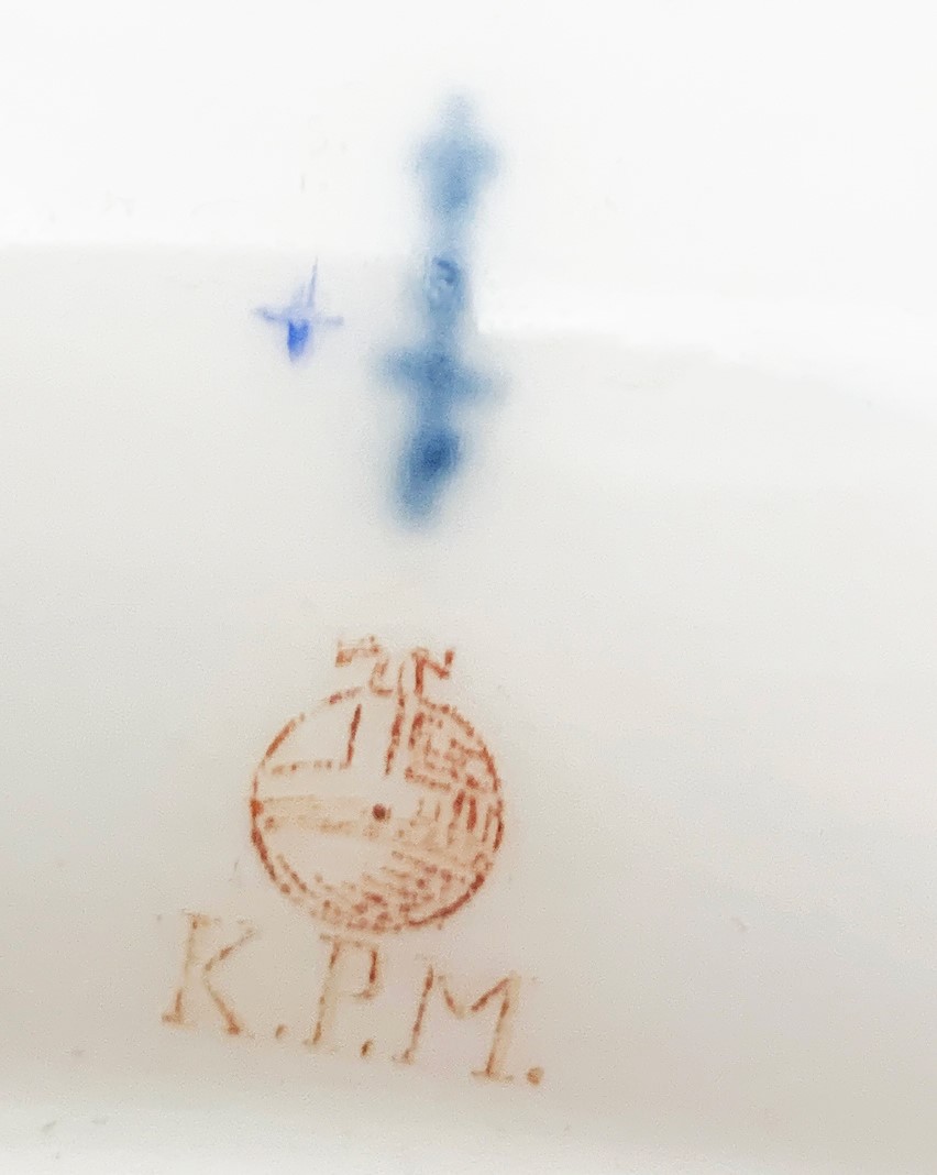 Lotto di 5 piatti e un porta uovo manifattura KPM con decoro in rosso e oro composto da