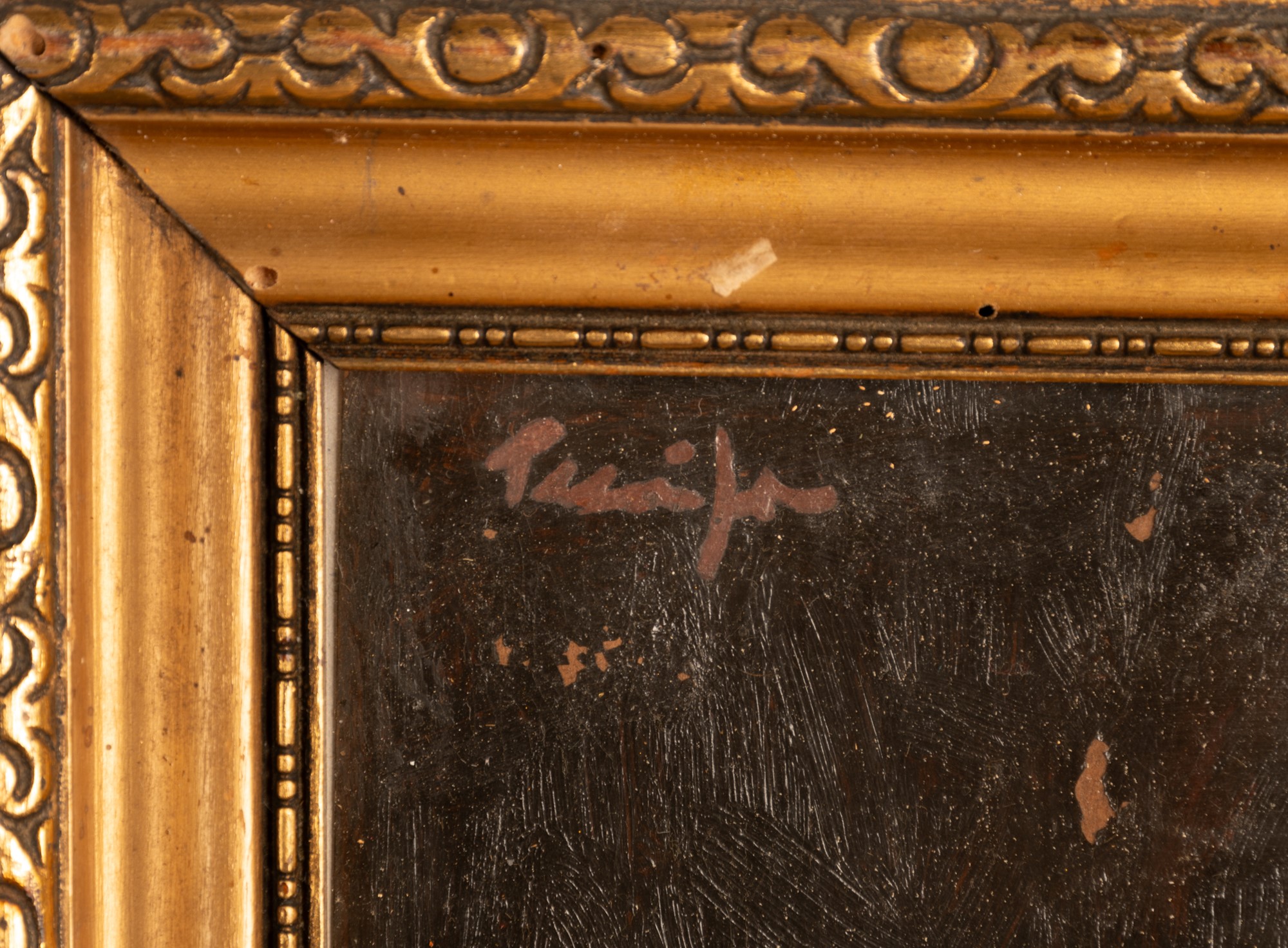 Olio su tavola cm 24x16; con cornice cm 31x23 Firma illegibile in alto a sinistra
