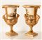 Un decoro dorato a rilievo a fiori stilizzati corre lungo tutta la parte centrale dei vasi