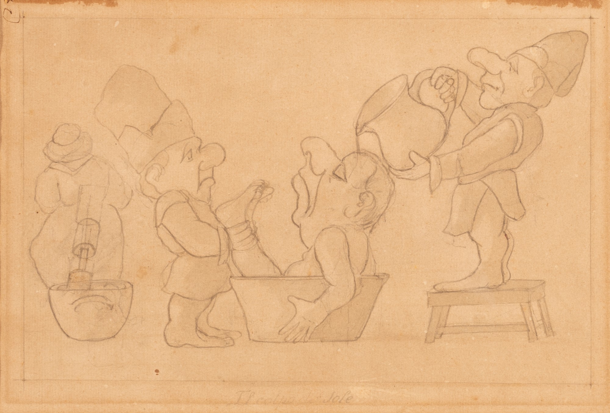 Antico disegno a matita caricaturale del XV secolo
