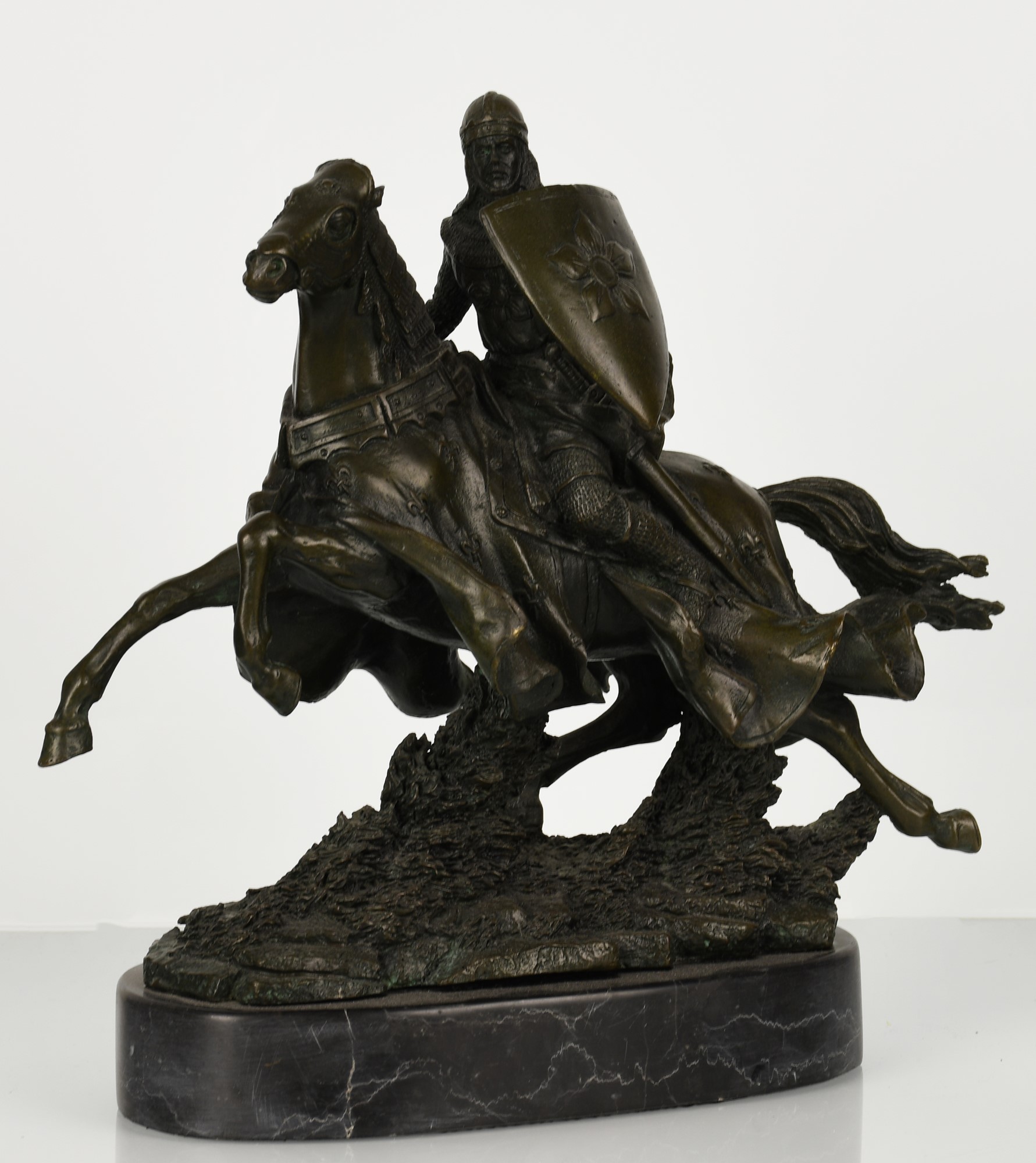 Scultura in bronzo raffigurante cavaliere XX secolo