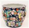 Grande cachepot porta vaso in ceramica dipinta su fondo azzurro con composizione di frutti