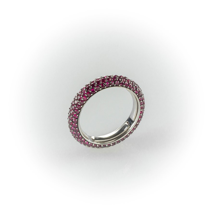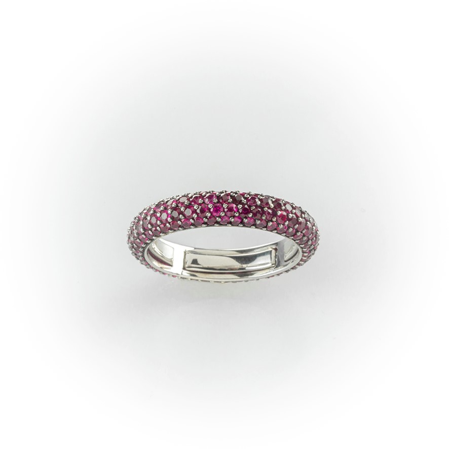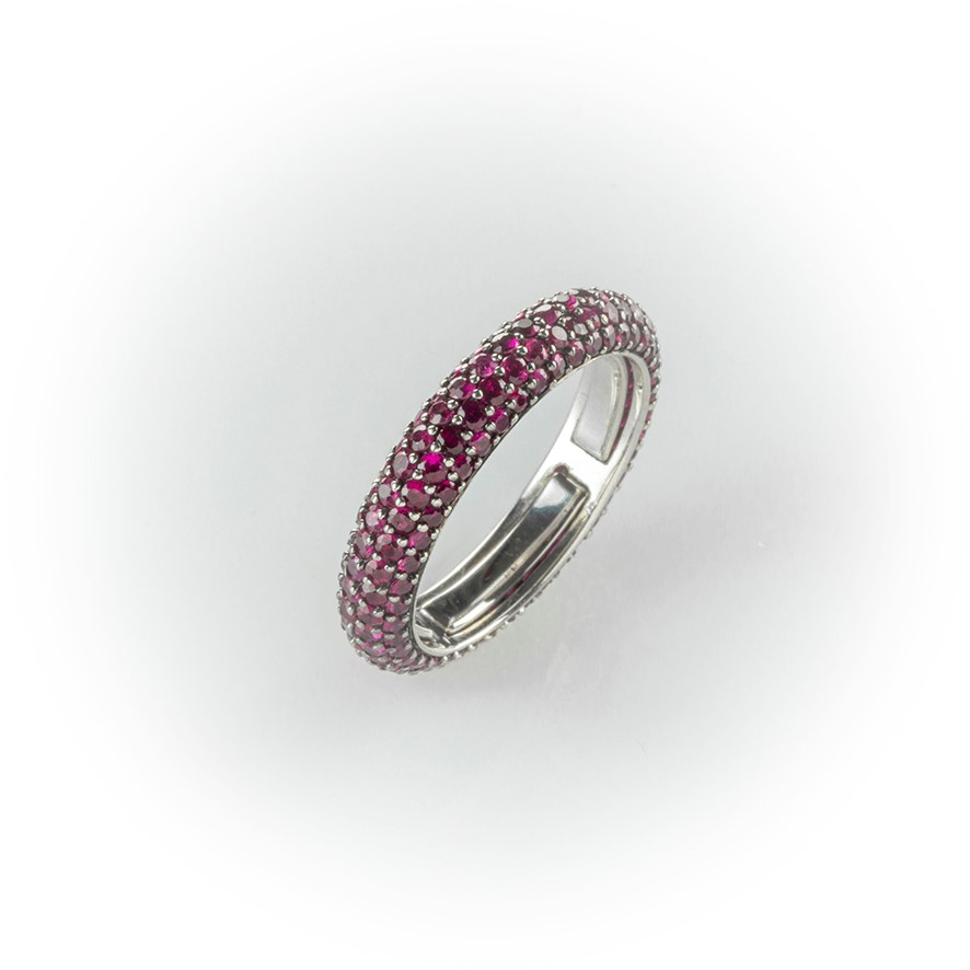 Veretta girodito multimisura Crieri realizzata in oro bianco con pavè di rubini