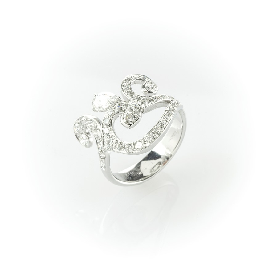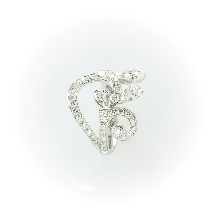 Anello fantasia Gismondi in oro bianco con diamanti taglio brillante e diamante a goccia