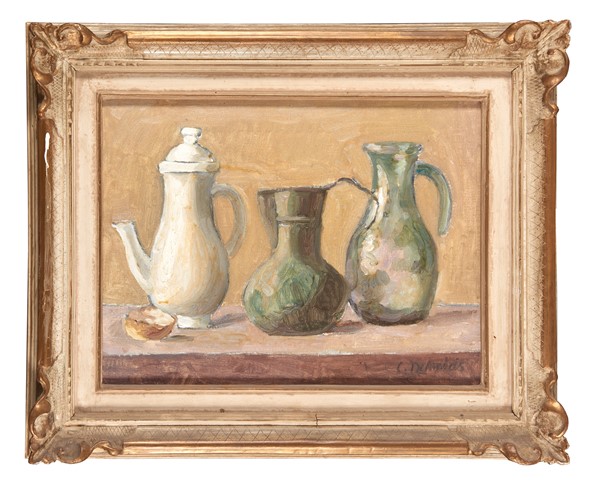 Cristoforo De Amicis "Natura morta col vaso verde" olio su tela (cm 35x45) firm