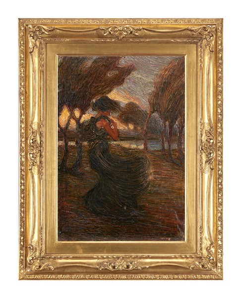 Mario Moretti Foggia "Fanciulla nel vento" 1914 olio su tela applicata a cartone