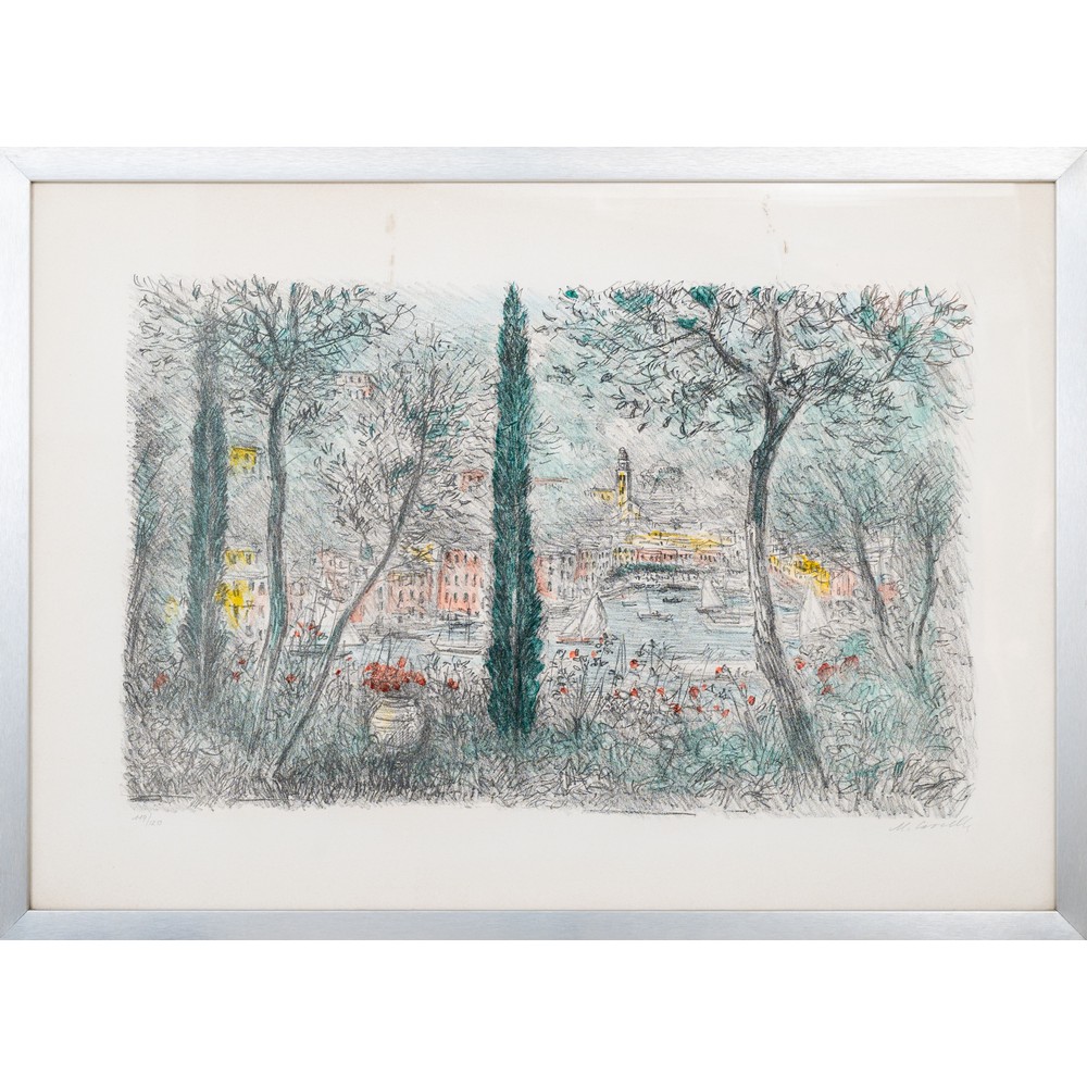 MICHELE CASCELLA, Portofino, Litografia a colori