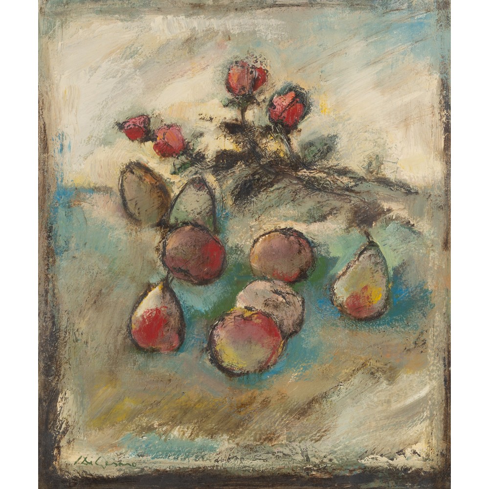 SIMONE DI GESARO, Frutta e fiori, Olio su tela