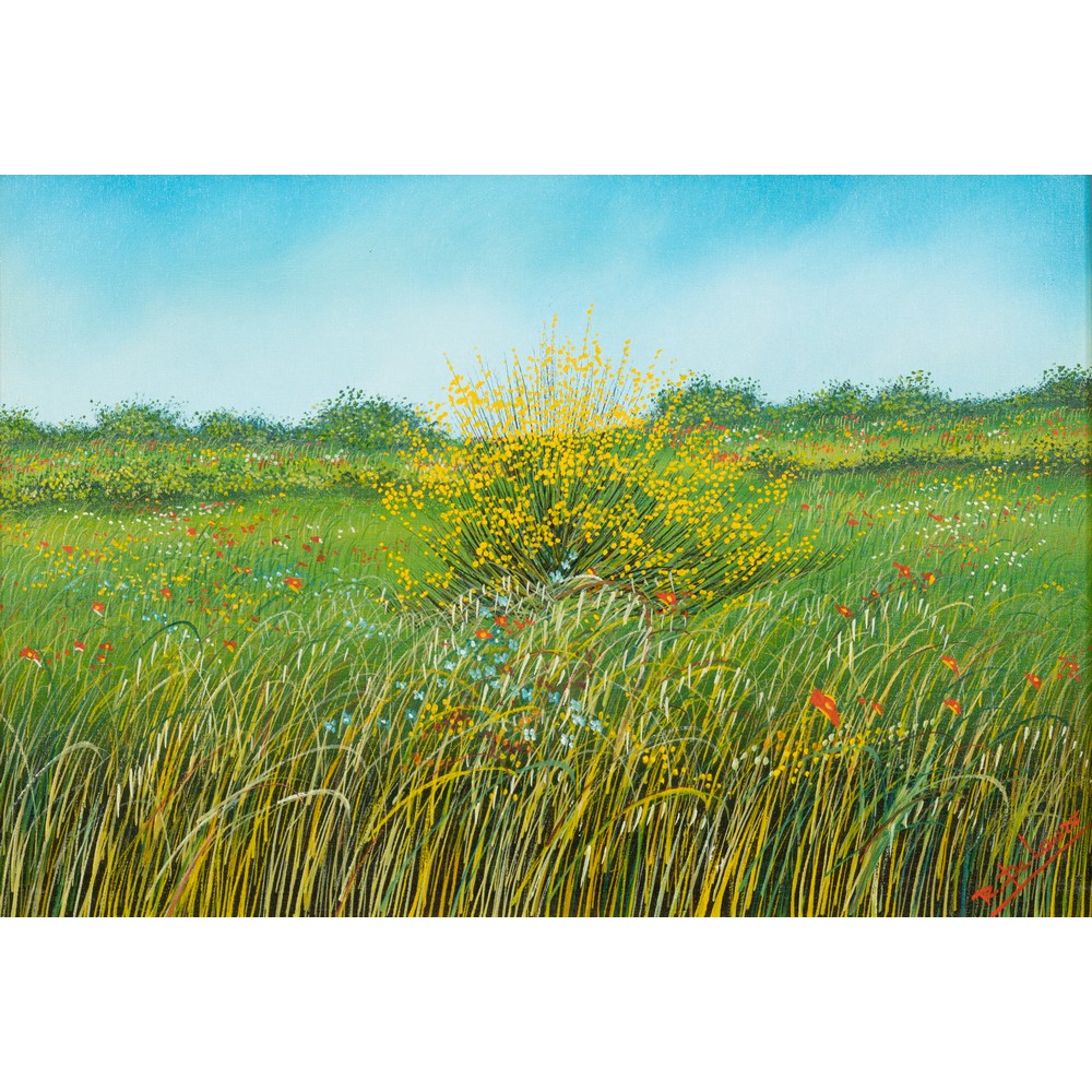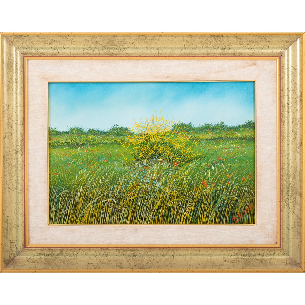 R. DE LAURO, Ginestre tra l'erba, Olio su tela