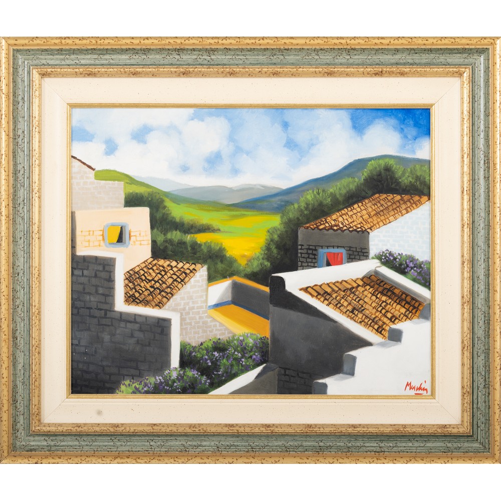 RENZO MESCHIS, Paesaggio e tetti, Olio su tela