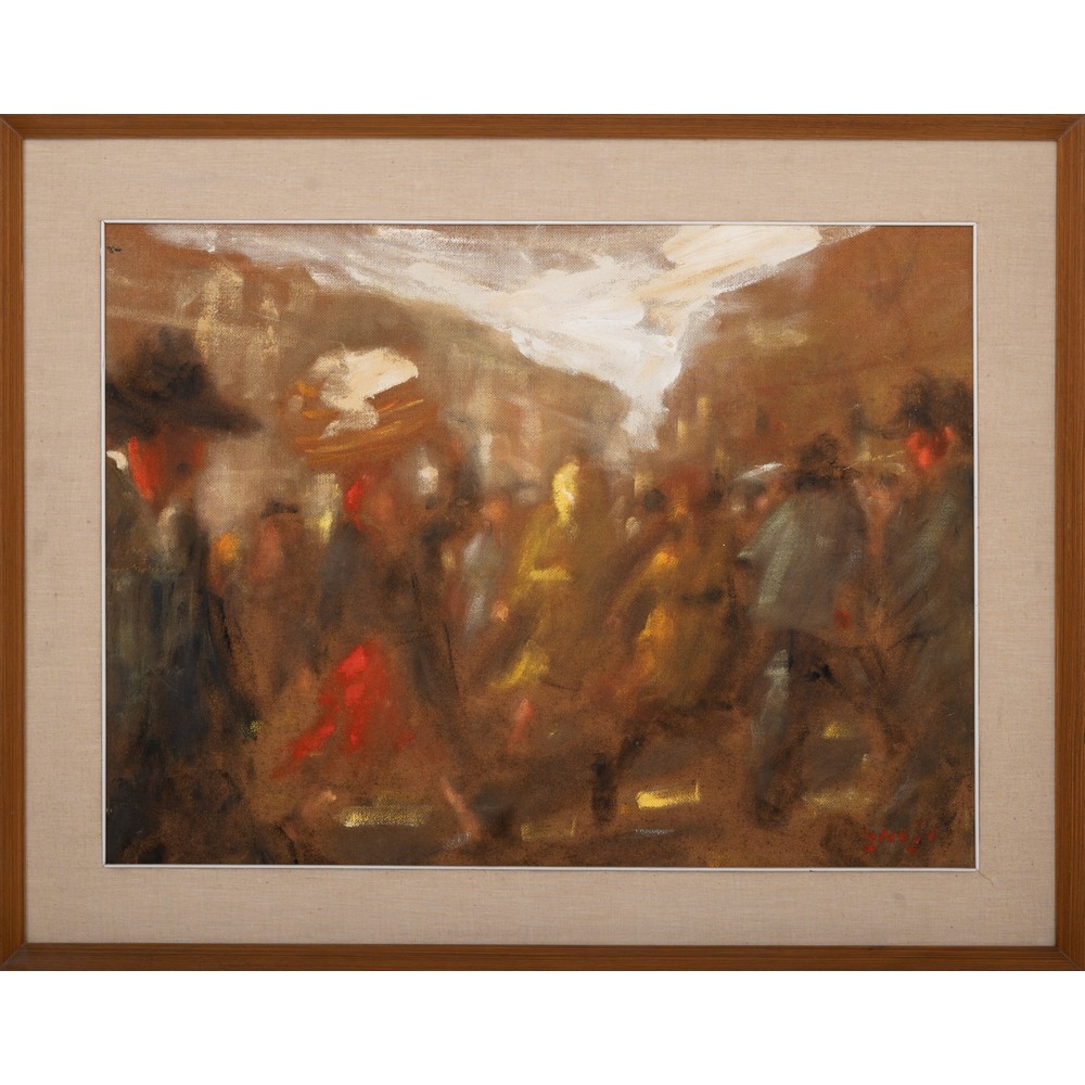 LORENZO ALBINO, Folla in piazza, Olio su masonite