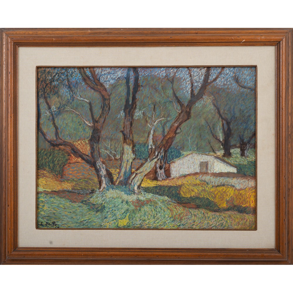 Paesaggio boschivo con caseggiato - 1959