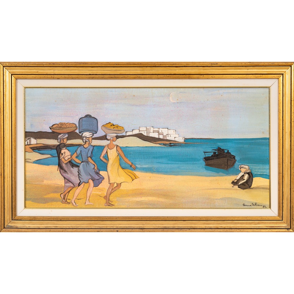 PITTORE DEL XX SECOLO, Donne al mare, Olio su tela